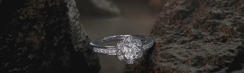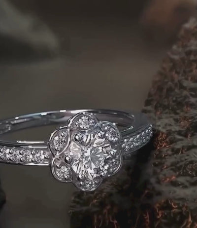 “Bloom in brilliance. Our floral-inspired Moissanite ring is made to sparkle with every move.”