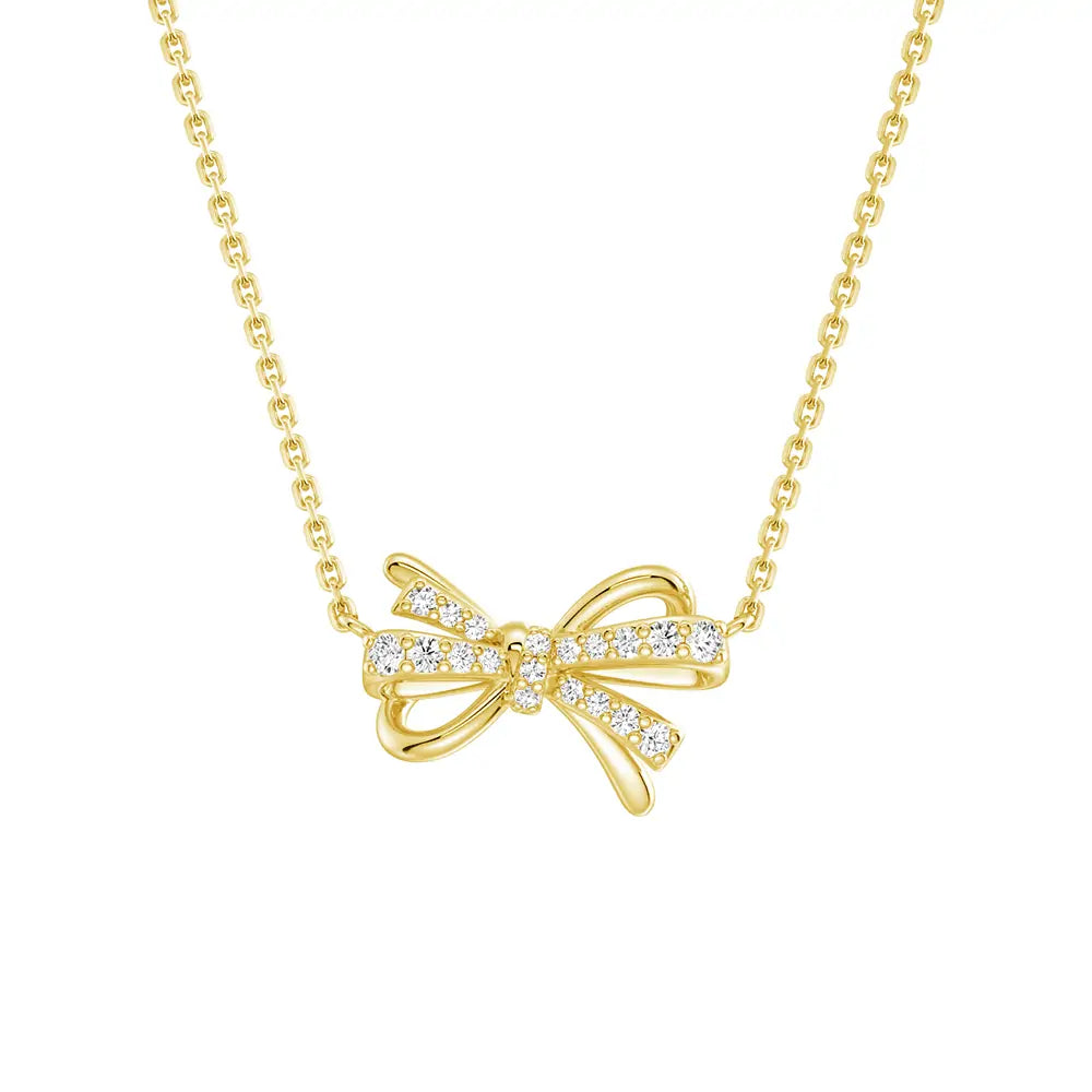 Filigree Bow Moissanite and Diamond Jewelry Set Necklace Bracelet and Earrings