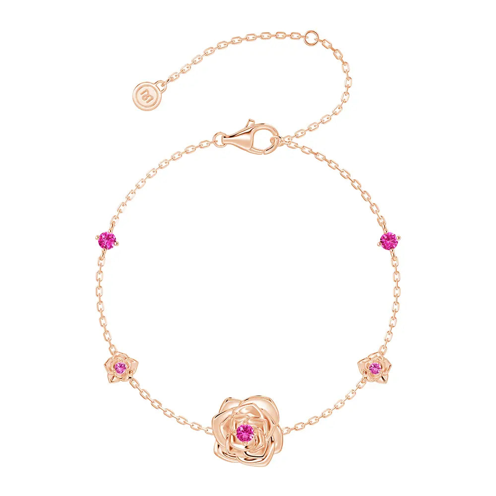 "Blossom Of Hope" Pink Ribb...- 18K Rose Gold Vermeil / 6"+2" Extender - $229.99