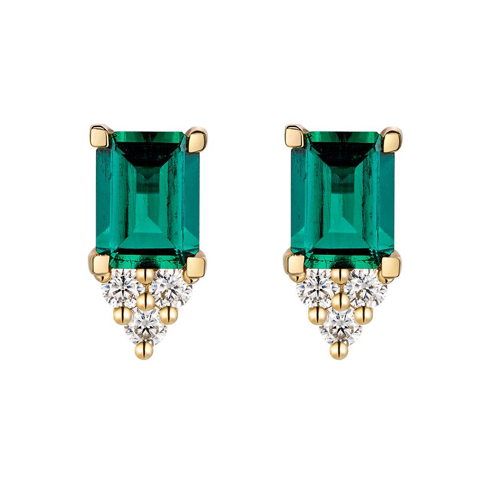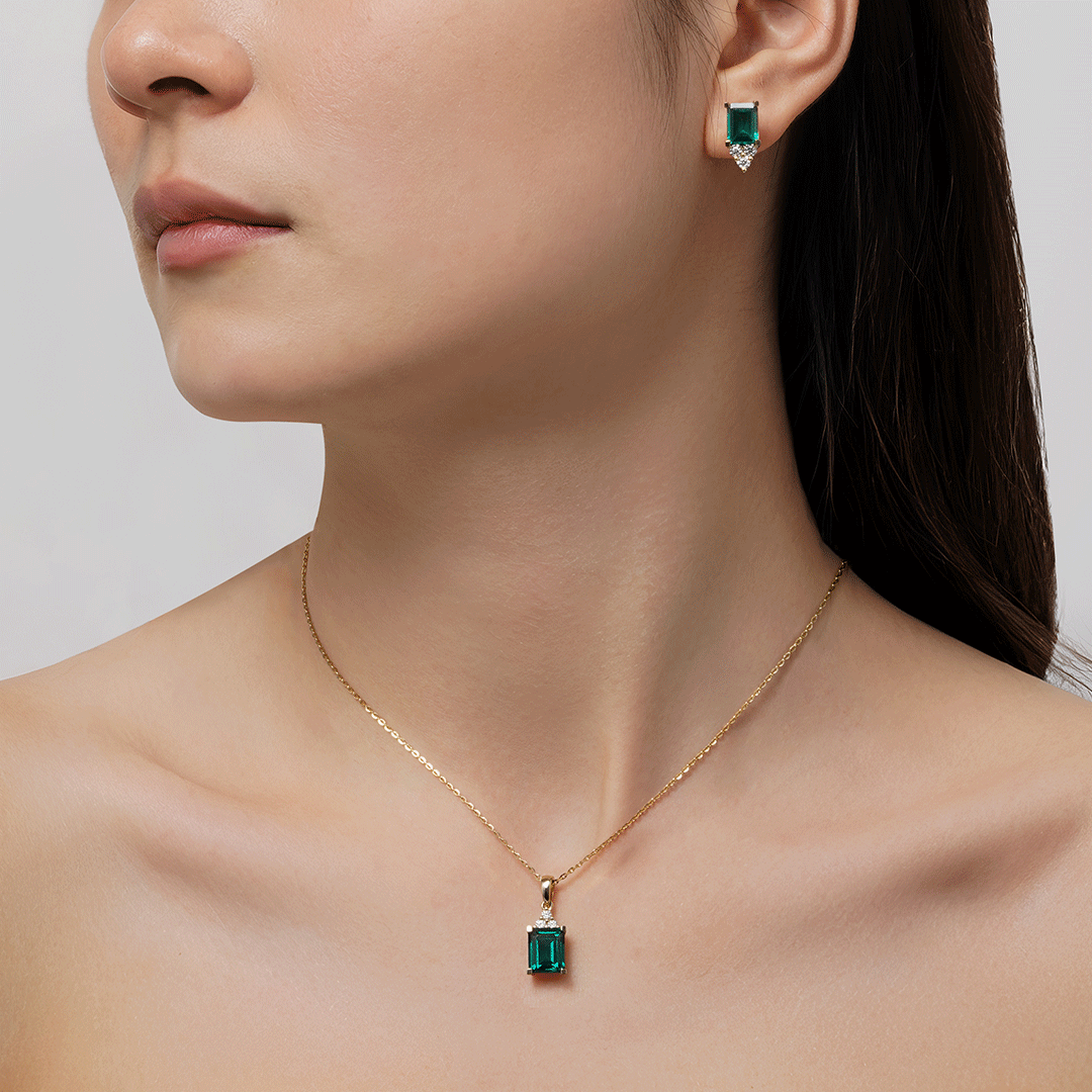 These earrings are a stunning and timeless piece of May birthstone jewelry. The earrings feature emerald-cut emerald gemstones that are rich in color and clarity, making them a beautiful representation of the May birthstone. The gemstones are surrounded by a trio of sparkling moissanite diamonds, adding to the earrings' brilliance and elegance. The stud style of the earrings creates a classic and versatile look, perfect for both formal and casual occasions. With a total carat weight of 4 ctw, these earrings are a statement piece that is sure to impress. These earrings make a special and personalized gift for anyone born in May or for anyone who appreciates the beauty of emeralds. Whether you're looking for a stunning pair of earrings for yourself or a special gift, the 4 Ctw Emerald-Cut Emerald Stud Earrings With Trio Moissanite Diamonds are a beautiful and elegant choice for May birthstone jewelry.