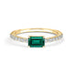 Celebrate love with the this Toi et Moi Promise Ring, a stunning expression of commitment and sustainability. This unique open-ring design features a marquise-shaped lab-grown diamond (0.12ct) and a beautiful emerald-cut lab-grown emerald (2.5x5mm), each prong set to enhance their brilliance and natural beauty.