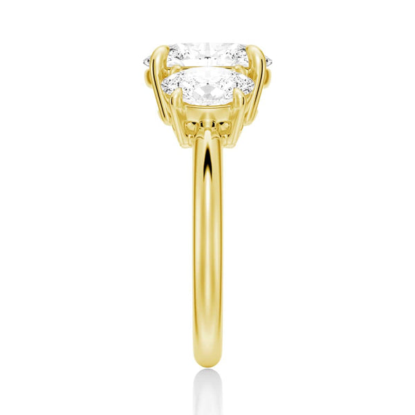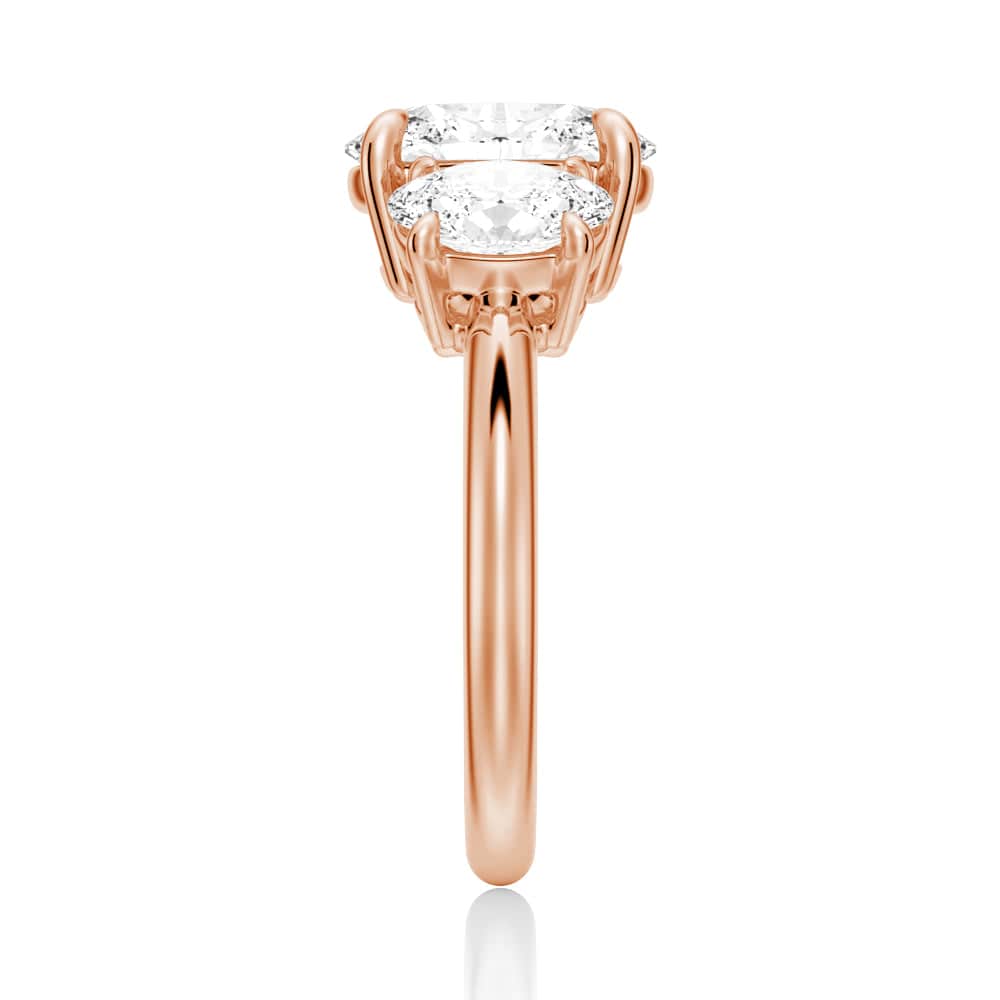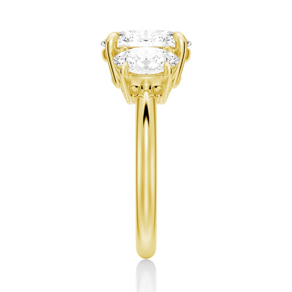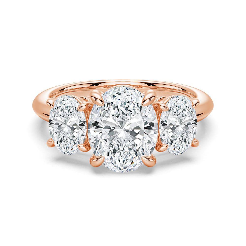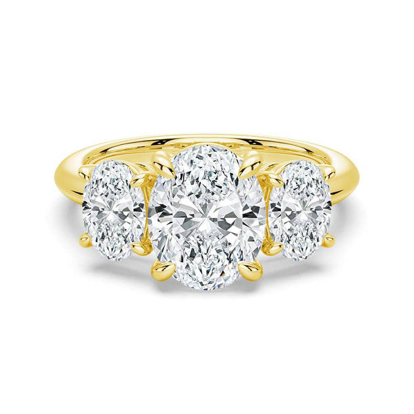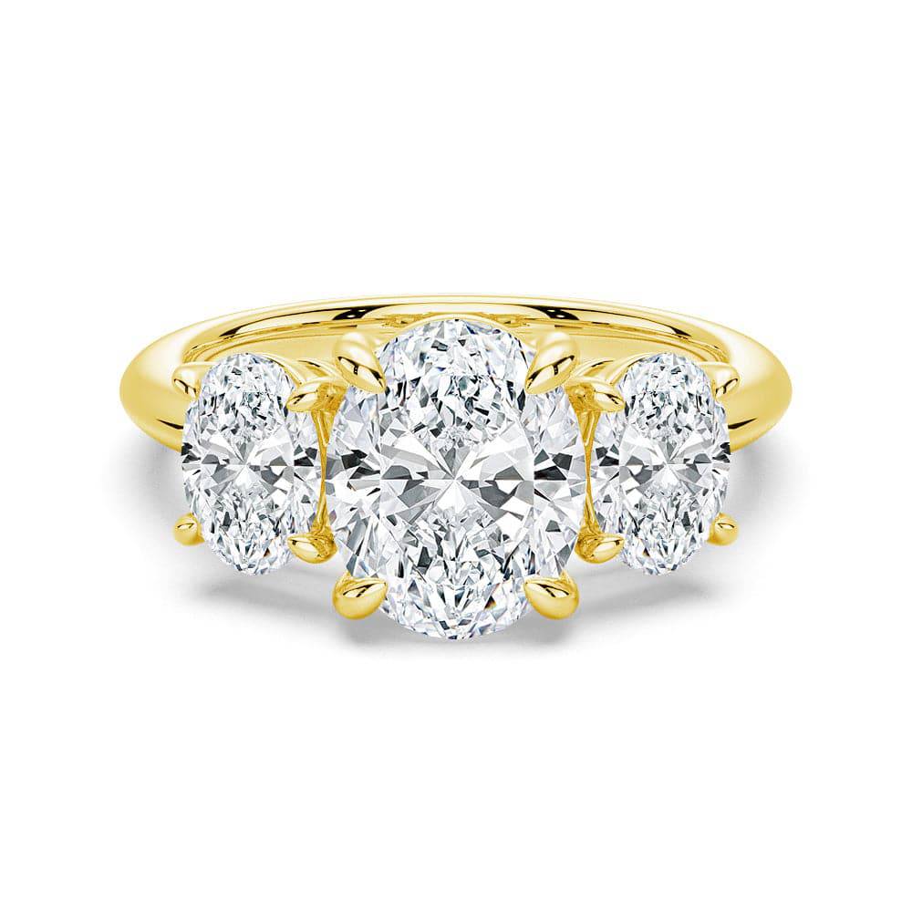The three-stone design of this ring symbolizes the past, present, and future of your relationship, making it the perfect choice for a romantic proposal or anniversary gift. The oval shape of the stones adds a unique touch of elegance and sophistication, making it stand out from other traditional engagement rings.