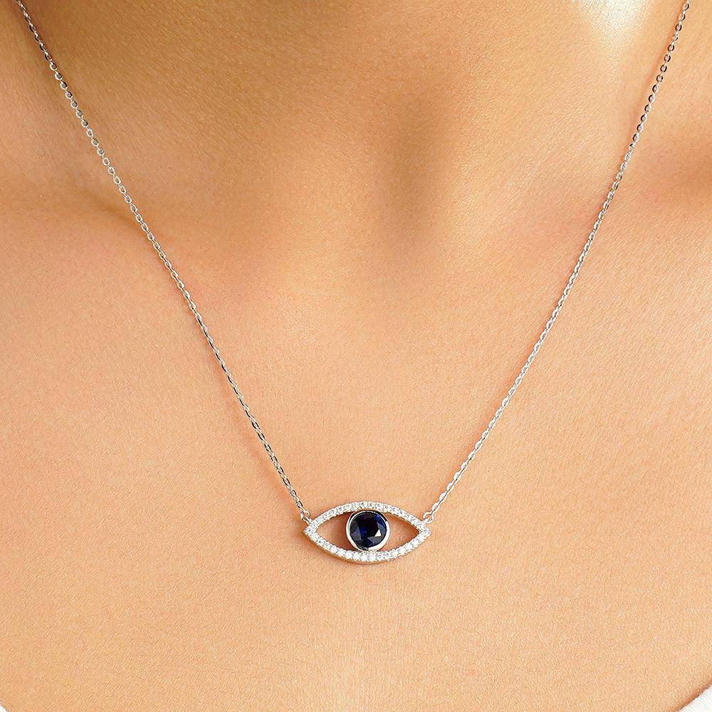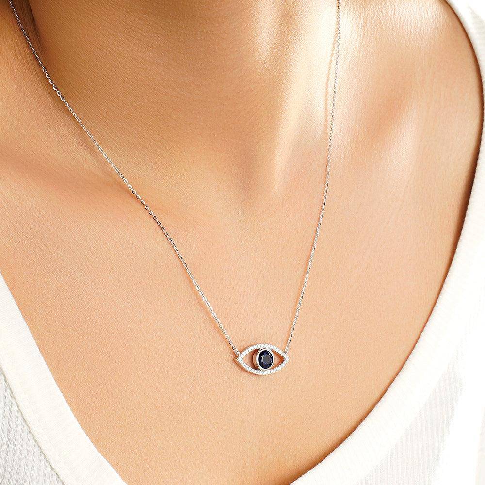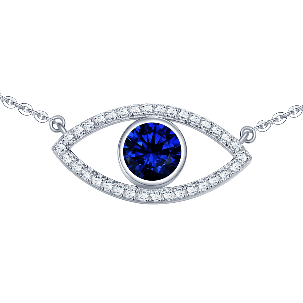 1.28 CT. Blue Sapphire and White Sapphire Evil Eye Necklace