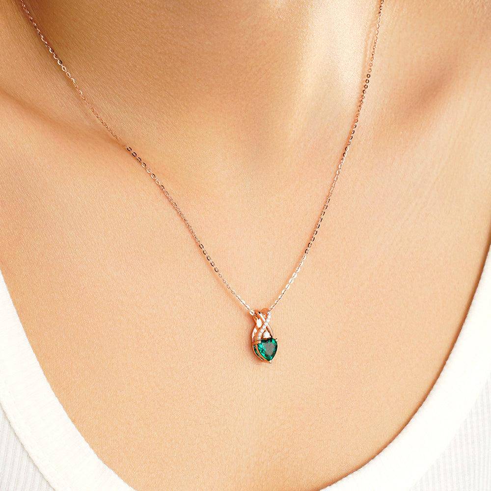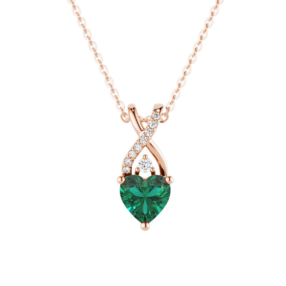 A romantic style with elegant color, this heart-shaped green emerald fashion pendant is a beautiful choice. She's certain to fall in love with this captivating style. Fashioned in precious rose gold, this elegant drop pendant features a brilliant 6.5mm heart-shaped green emerald gemstone that sparkles brightly.