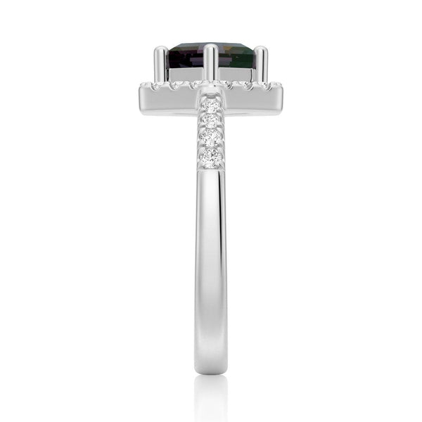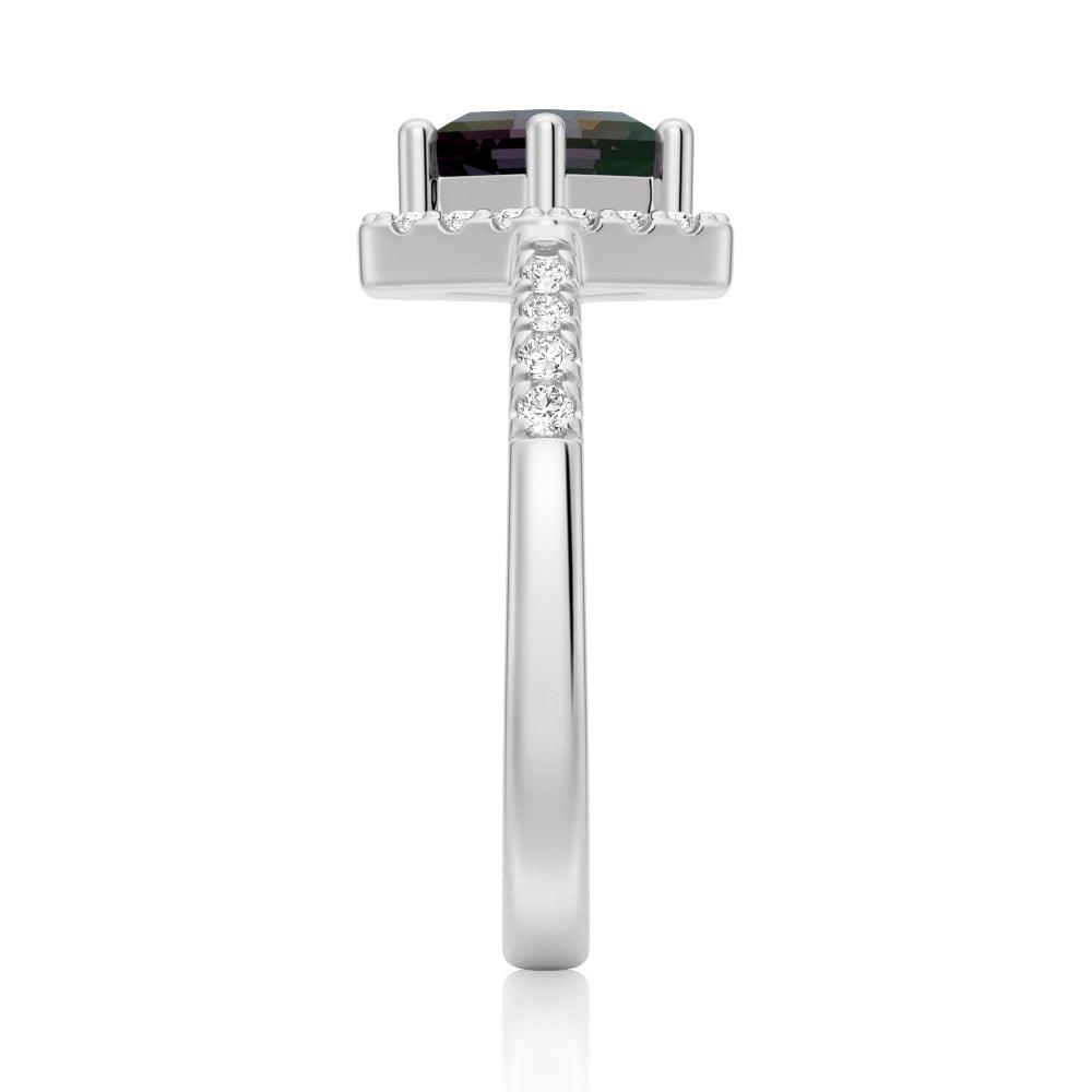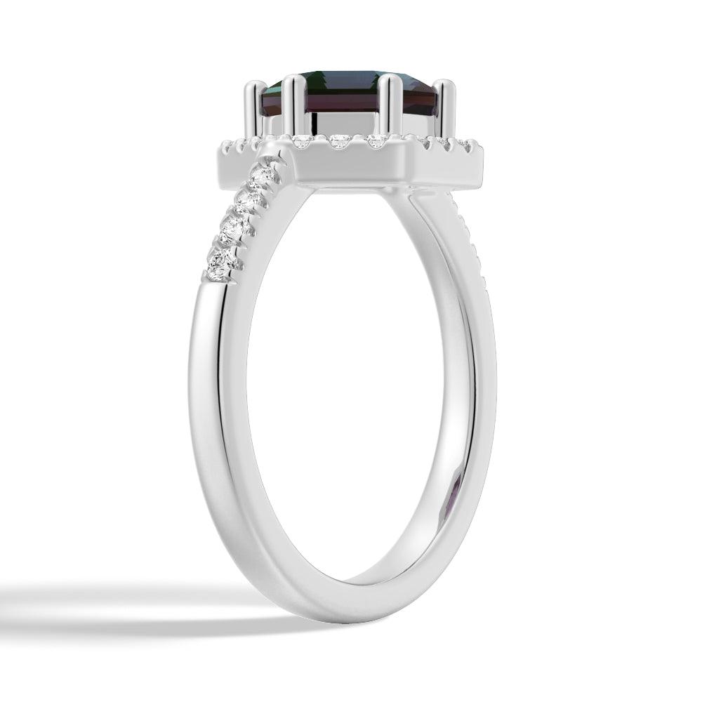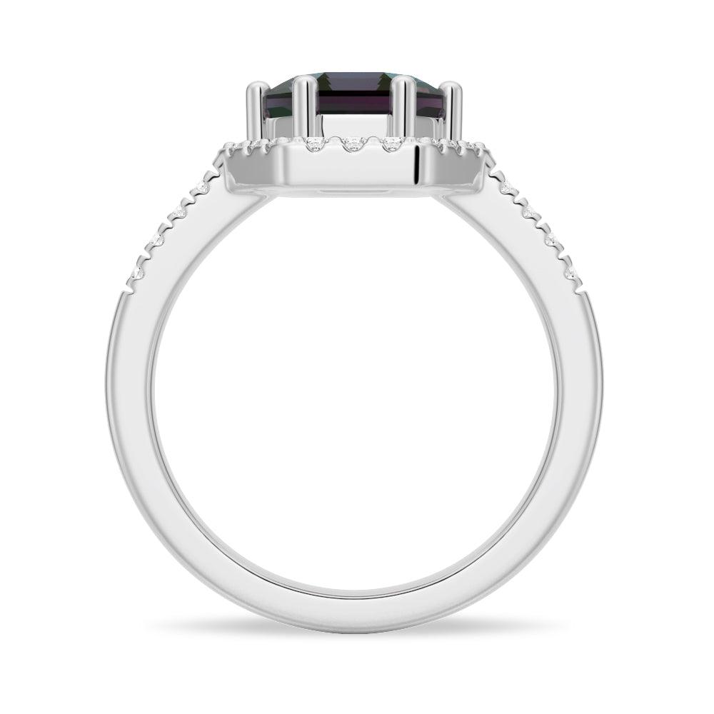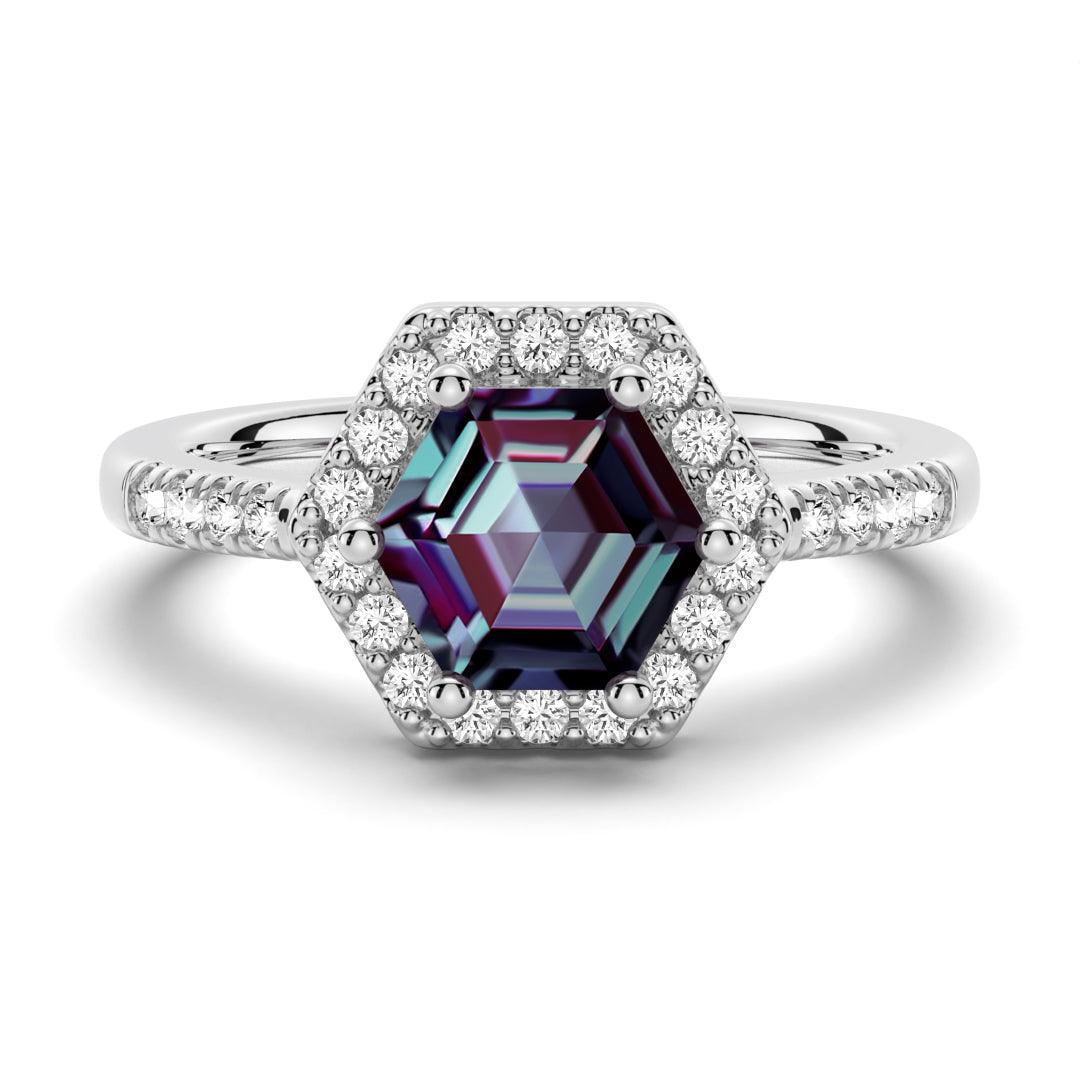1.5 CT. Hexagon Cut Alexandrite Engagement Ring With Moissanite Halo Pavé