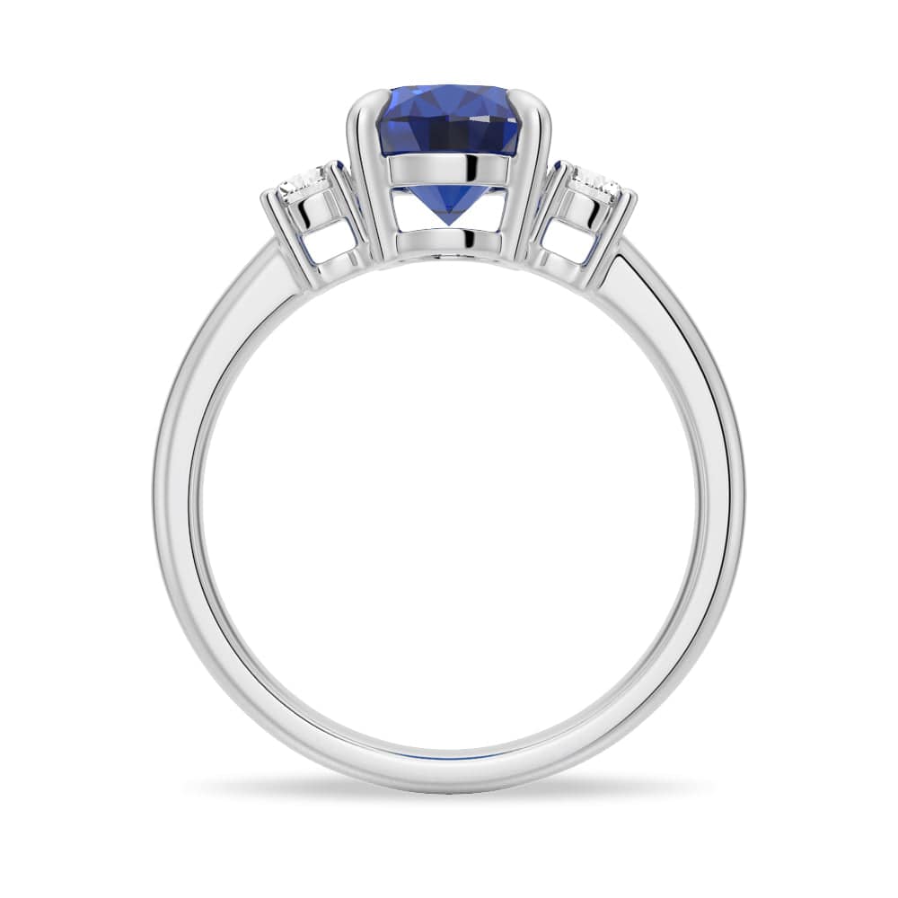 2 CT. Oval Blue Sapphire and White Sapphire Three Stone Ring