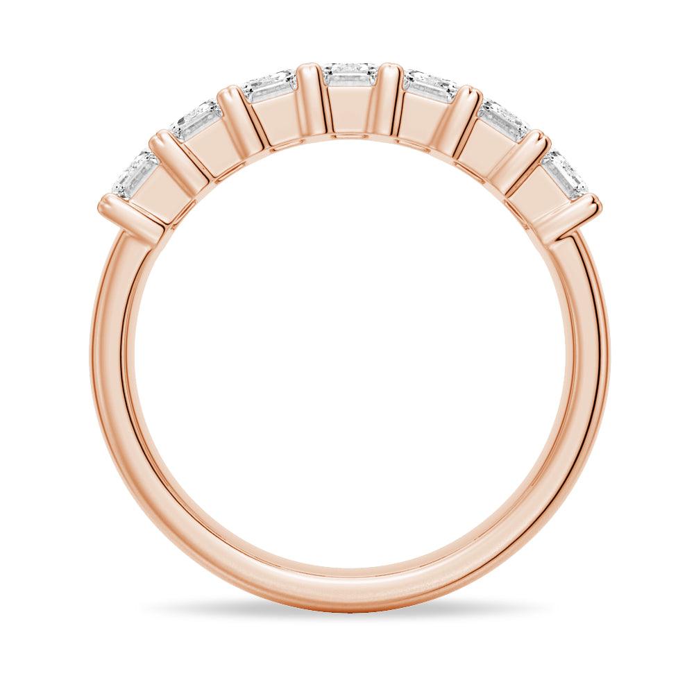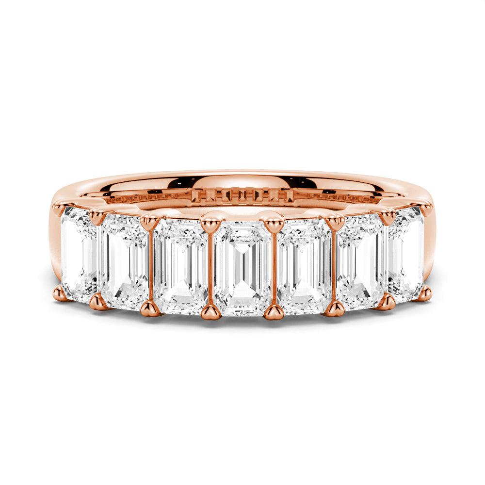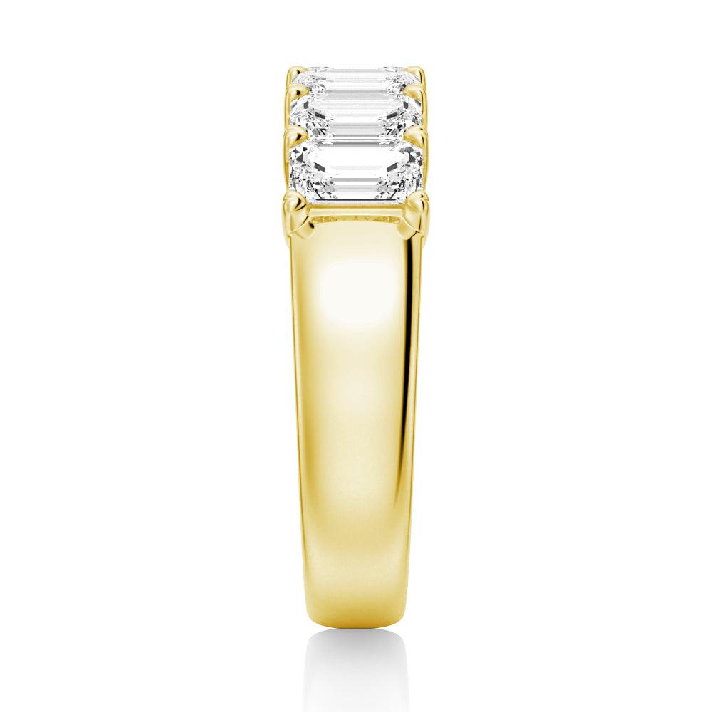 Featuring a row of Emerald cut moissanite diamonds, this bold half eternity band is beautiful in every way. Available insolid S925 silver, 10K gold, 14k gold, and platinum, and three colors,white gold, yellow gold, and rose gold, this ring is a stunning addition to any jewelry collection. The emerald cut moissanites are expertly set in a half eternity style with shared prongs, creating a continuous line of sparkling brilliance. With its timeless design and exceptional quality, this ring is a perfect choice for any occasion.