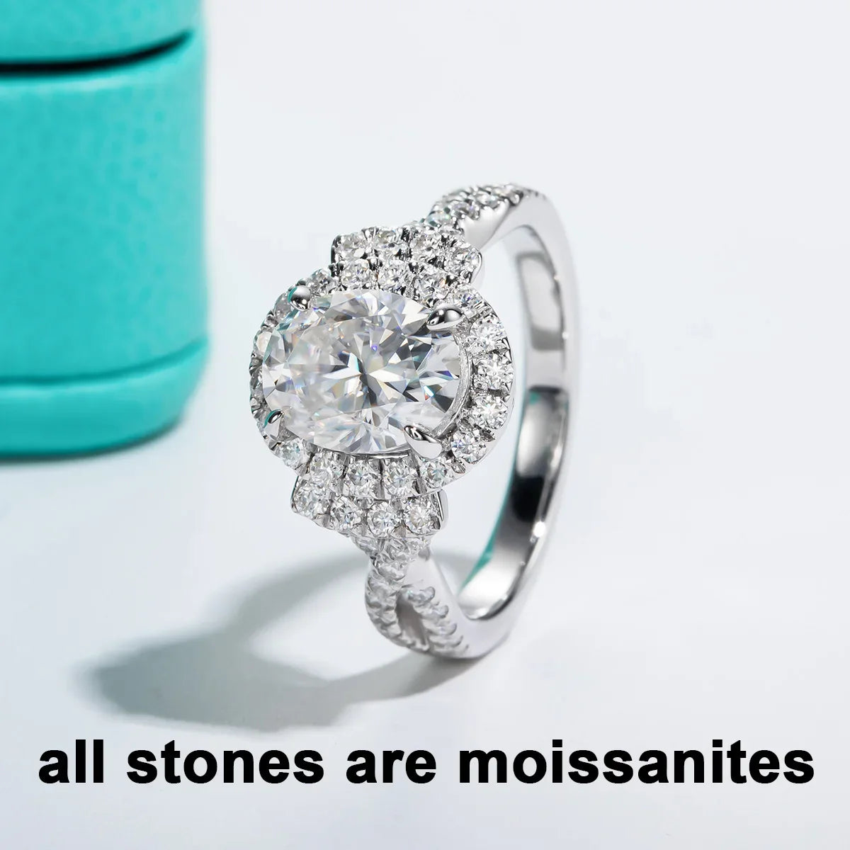 2CT Oval Cut D Color Moissanite Halo Engagement Ring