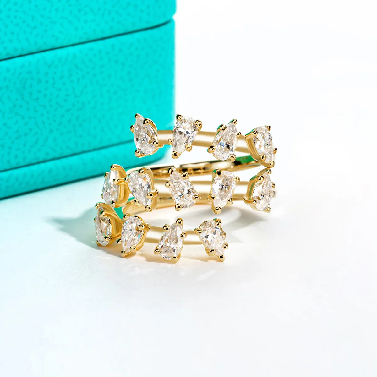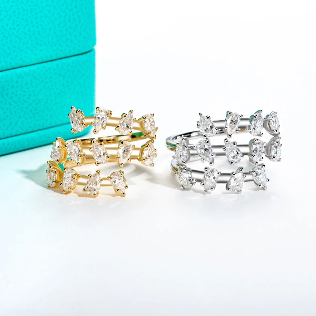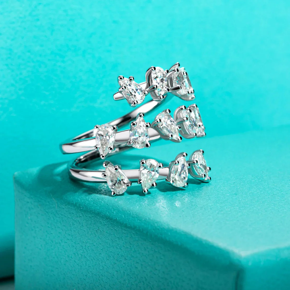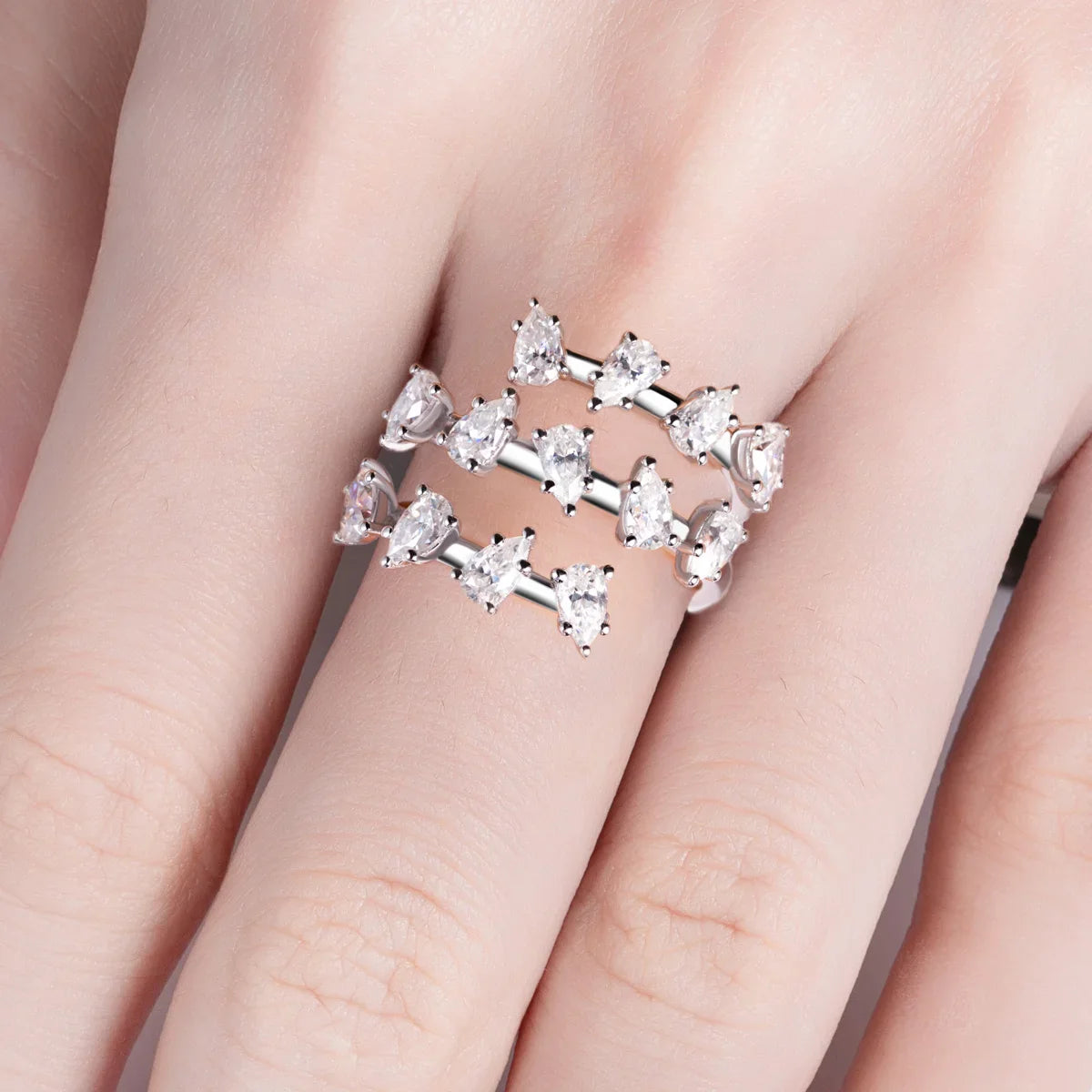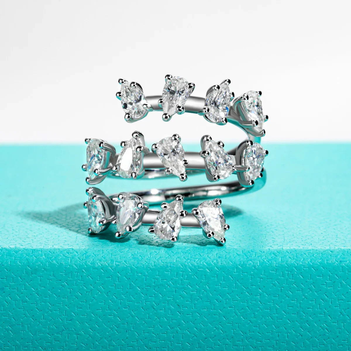 Celebrate your love with the Zeevera.com 3.9cttw Pear Cut Moissanite Wedding Band. Crafted from 925 sterling silver, this adjustable ring features a stunning 3.9cttw pear cut D color VVS1 moissanite, offering exceptional brilliance and clarity. A perfect symbol of commitment and elegance.