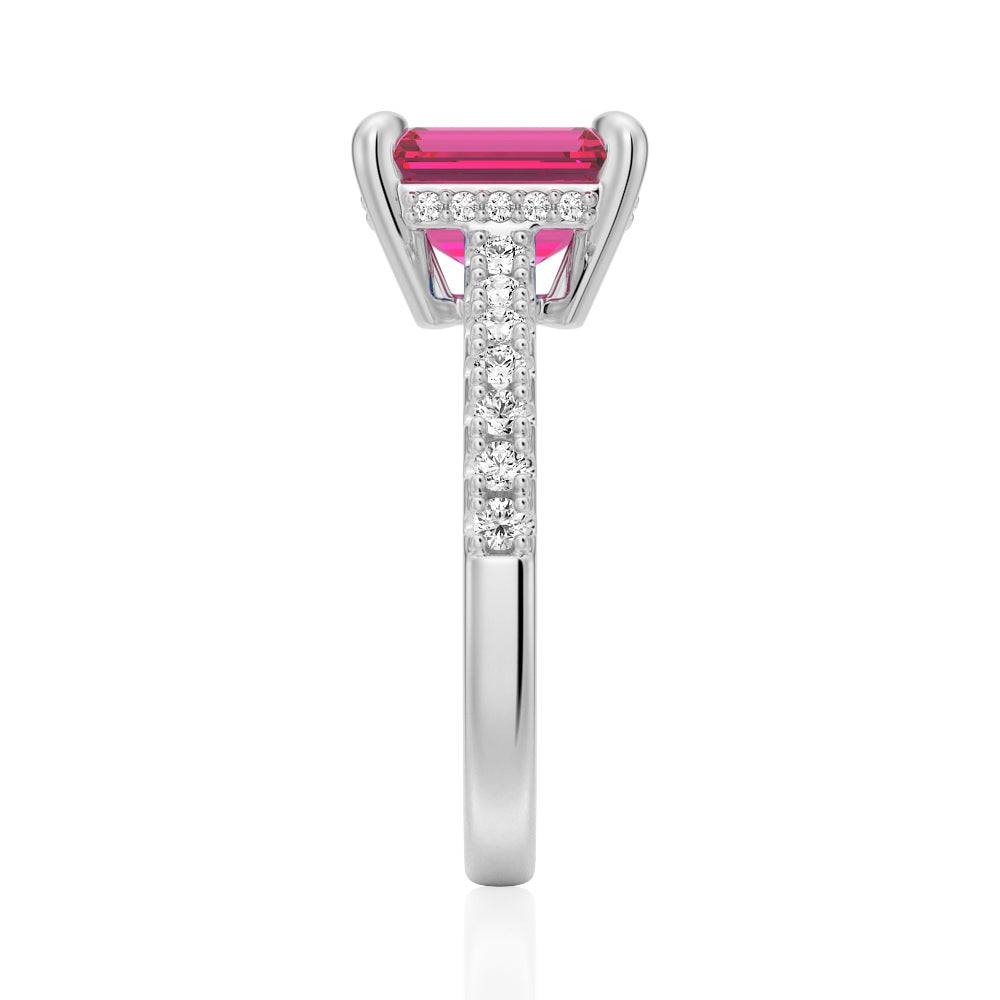 3 CT. Side Stone Lab Grown Ruby Engagement Ring With Hidden Halo