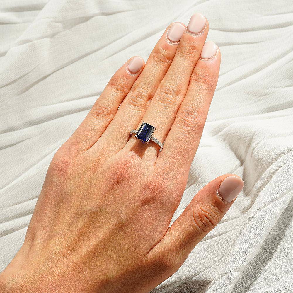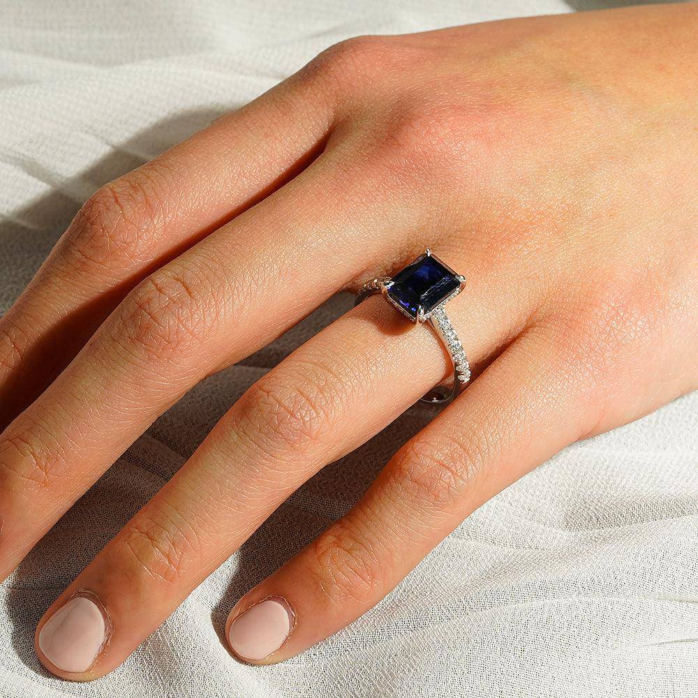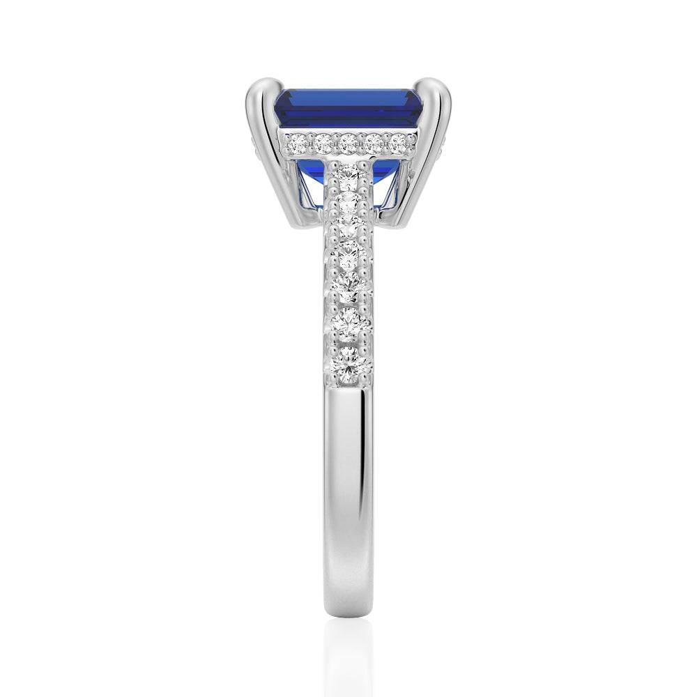 Designed to captivate hearts, this ring exudes elegance and style. The exquisite combination of the lab-grown sapphire and the sparkling side stones creates a harmonious and dazzling display of beauty.