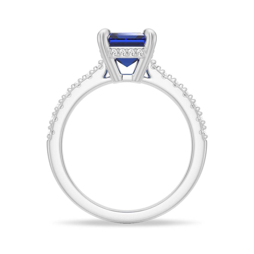 3 CT. Side Stone Lab Grown Sapphire Engagement Ring With Hidden Halo