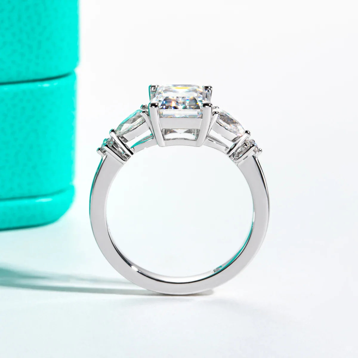3CT Emerald Cut & 0.3CT Pear Cut Moissanite Engagement