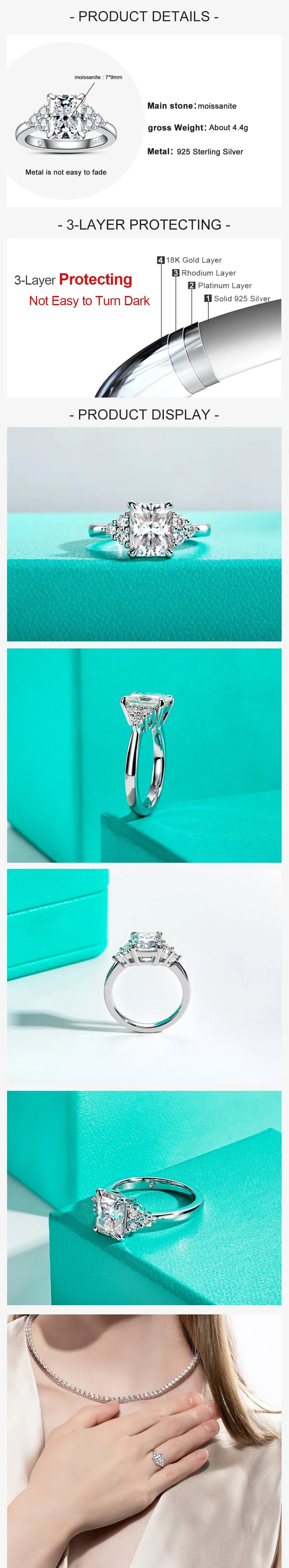 - Premium Moissanite: 3ct radiant-cut D color moissanite for exceptional brilliance.