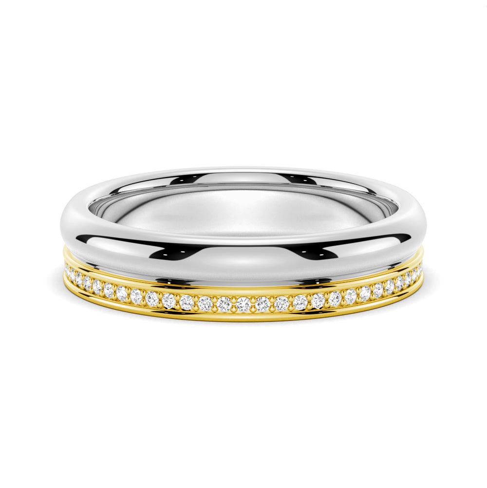 4.2mm Polished Finish Two Tone Wedding Band With Pave Edge