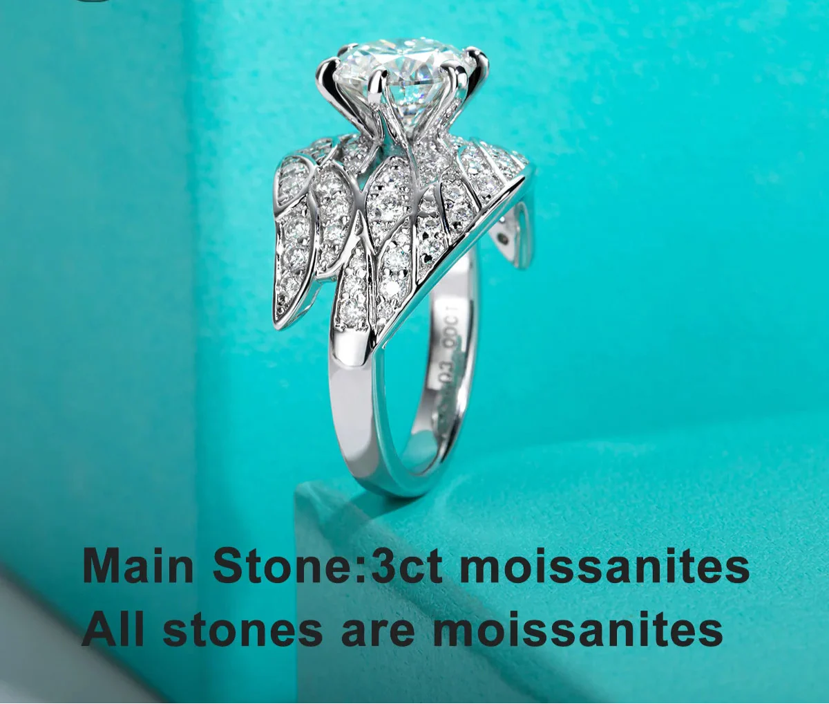 4 CTTW Angel Wing Moissanite Engagement Ring