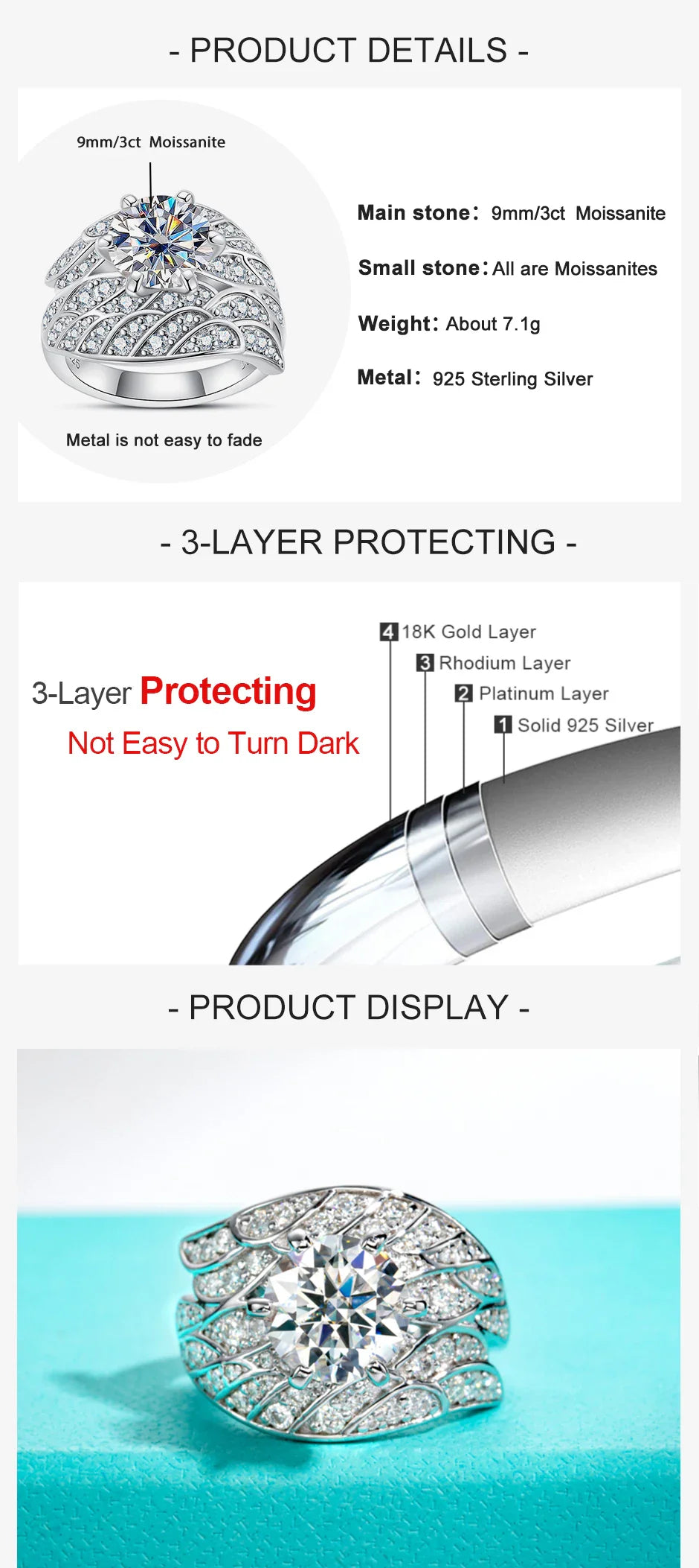 Stone: 4CTTW Round Cut Premium Moissanite Ring