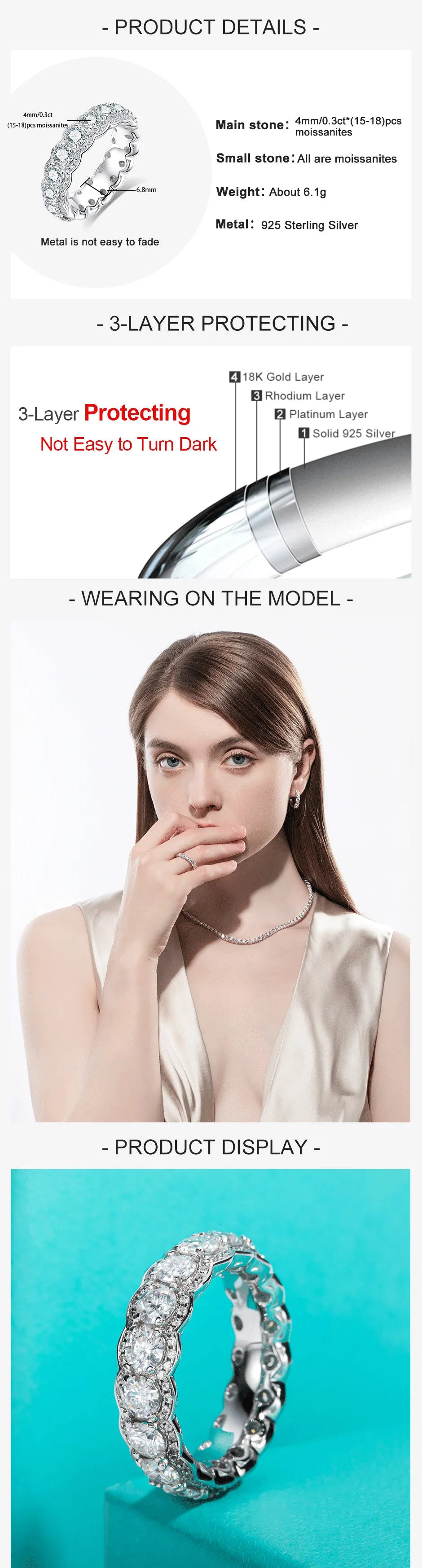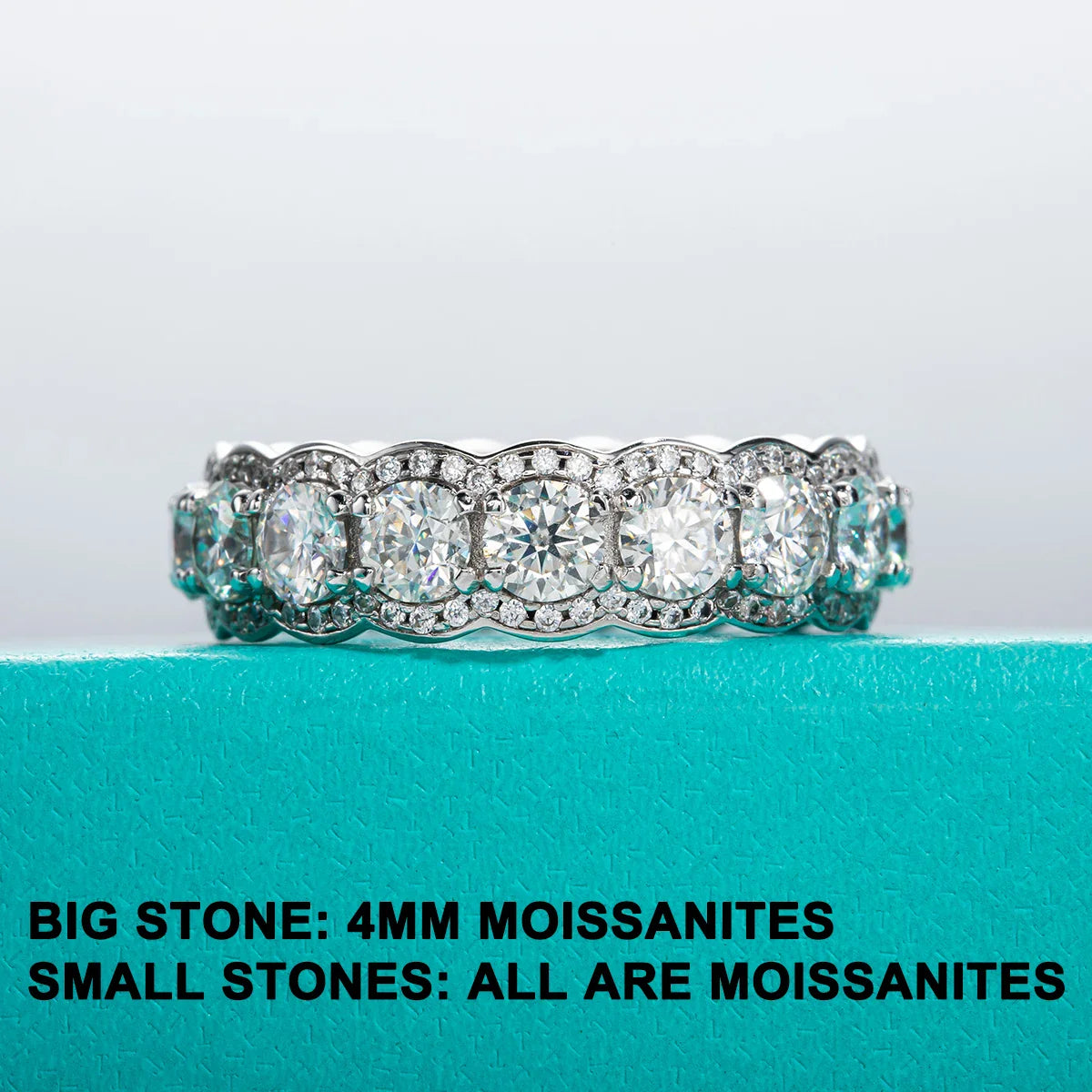 Elevate your jewelry collection with this stunning 4mm Moissanite Wedding Band Ring from Zeevera.com. Featuring 5.5cttw of radiant D Color moissanite stones, this eternity band is crafted in 925 sterling silver for lasting beauty and sophistication. Perfect for weddings, anniversaries, or everyday elegance.