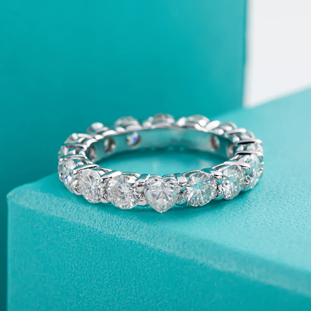 1× 4mm Heart & Round Cut Moissanite Eternity Band Ring