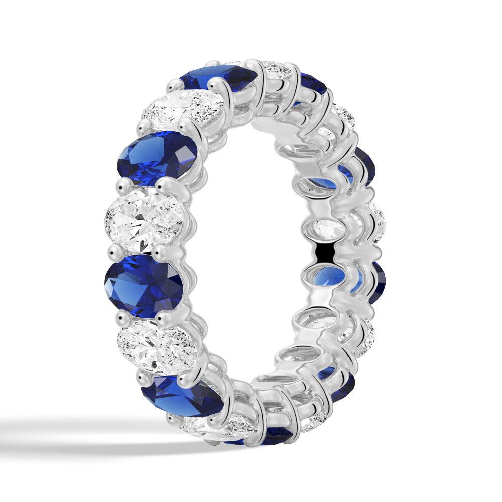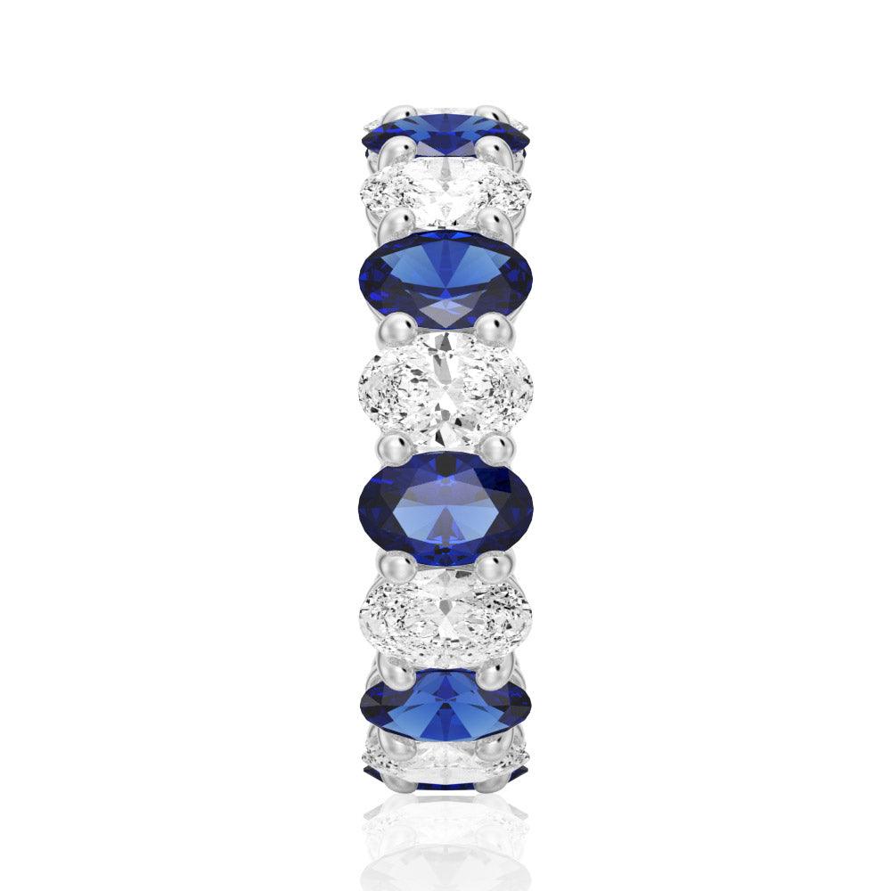 6.6 CT. Lab Grown White Sapphire with Blue Sapphire Gemstone Band