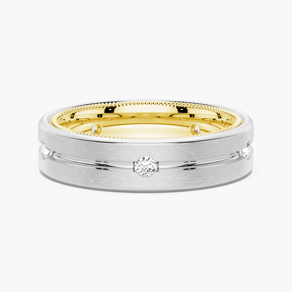 Introducing our 7.5mm Two-Tone Matte Finish Moissanite Men's Wedding Band, a striking blend of modern style and sophistication. With its unique two-tone design and matte finish, this wedding band exudes contemporary charm. Available in a range of premium materials, including S925 Silver, 10K Gold, 14K Gold, or Platinum, and your choice of White, Yellow, or Rose Gold, you can customize this band to match your individual taste. Adorned with a dazzling Moissanite gemstone, this ring is a testament to your enduring love and commitment. Experience exceptional craftsmanship and timeless elegance with this remarkable wedding band, designed to make a lasting impression.