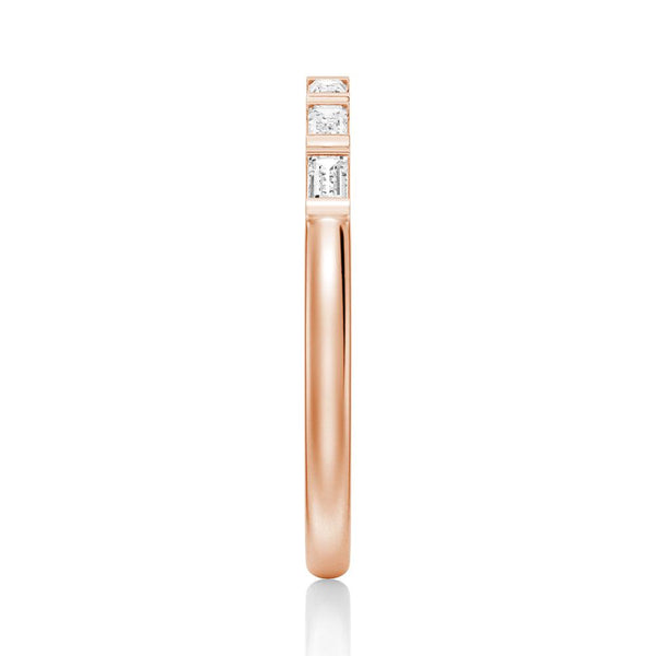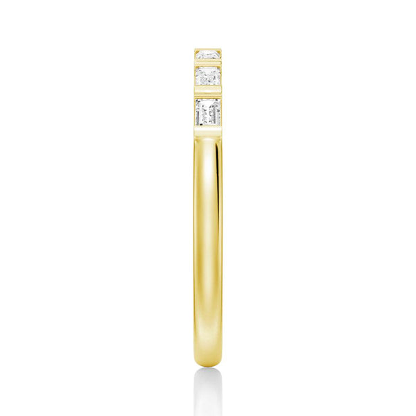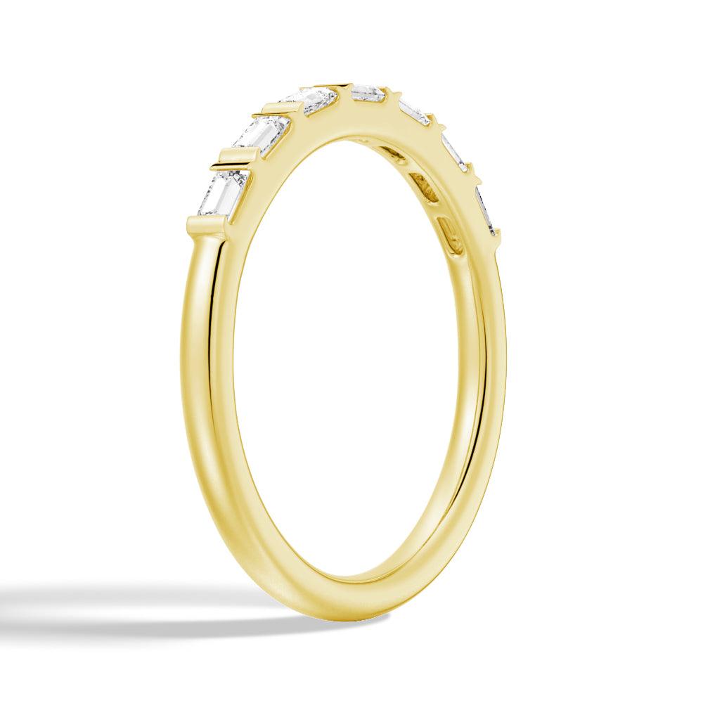This band features seven baguettecut moissanite stones, set in a sleek and modern design. Each stone is expertly cut and polished to maximize its brilliance and fire, creating a dazzling and luxurious effect. Crafted from high-qualityS925 Silver/10K Gold/14k Gold/Platinum, this wedding band is not only beautiful but also durable enough to last a lifetime. Perfect as a wedding band or simply as a statement piece to add to your collection, the 7 Stone Emerald Cut Moissanite Wedding Band is sure to make a lasting impression.