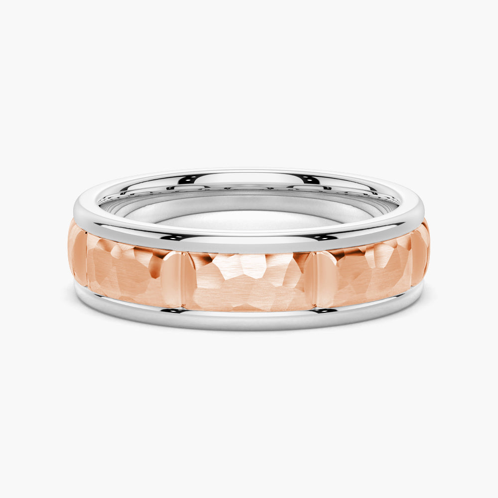 7mm Two Tone Hammered Men's Wedding Band