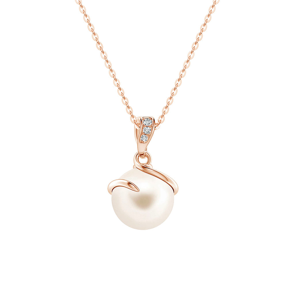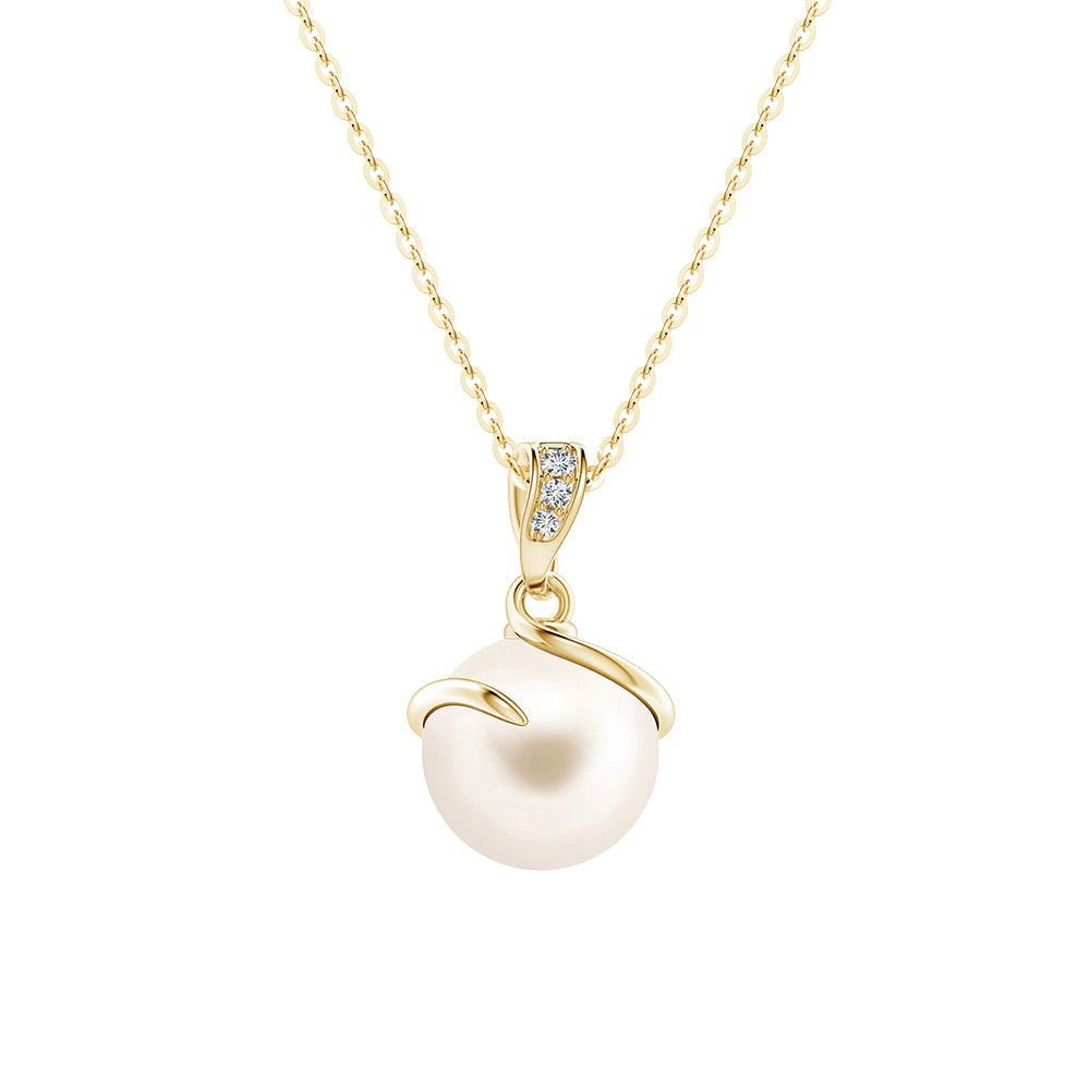 8mm Freshwater Cultured Pearl Spiral Pendant with Moissanite Accent