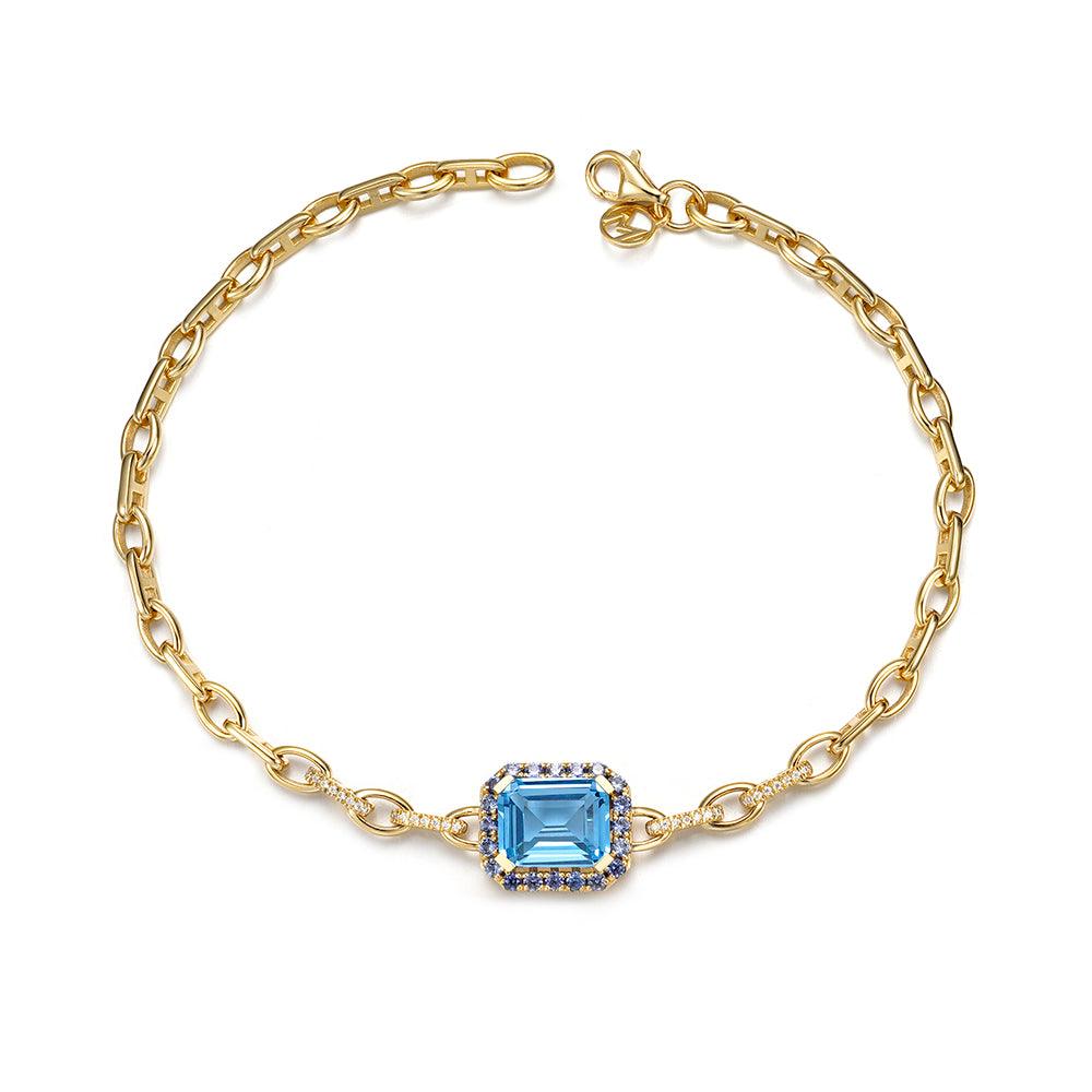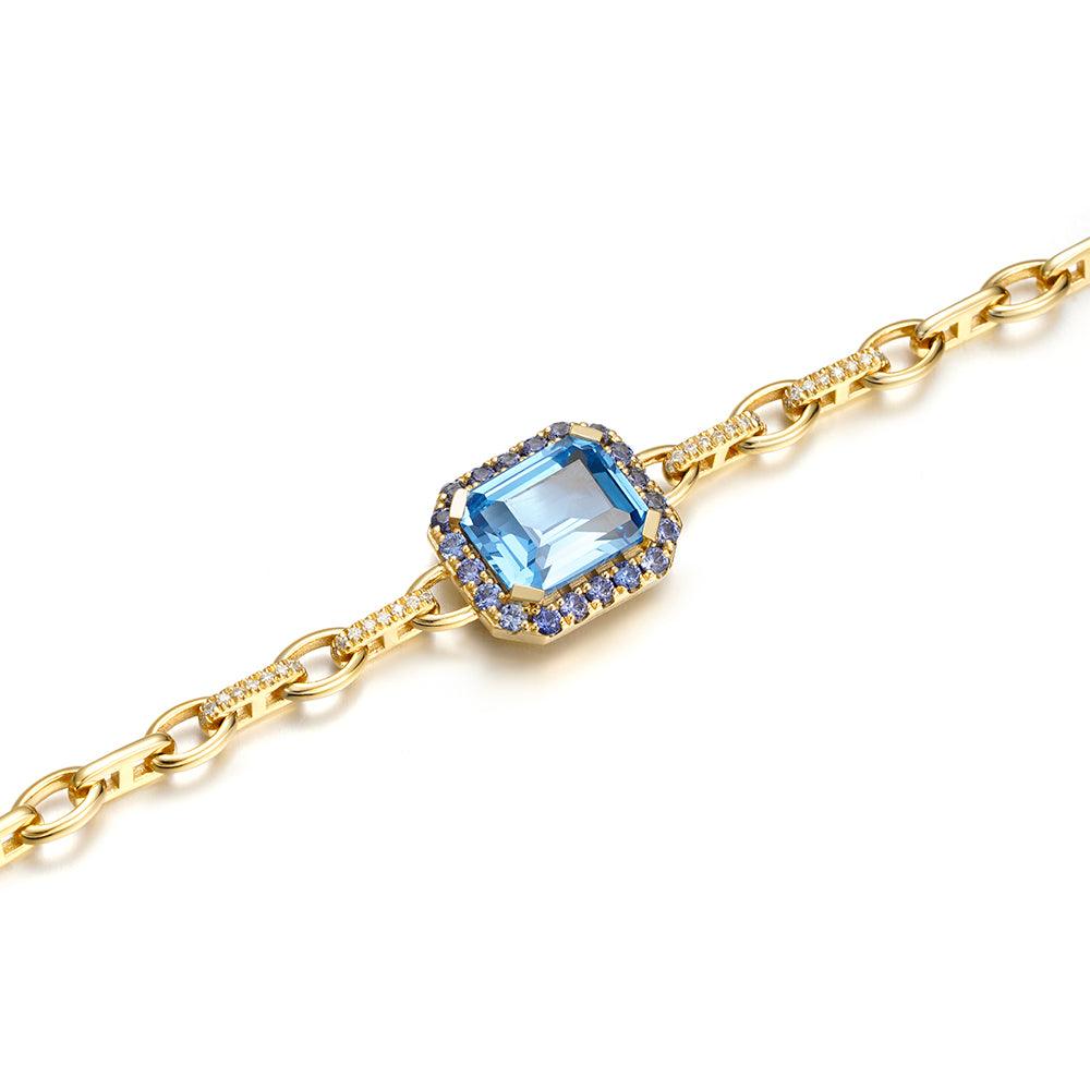 Crafted with high-quality S925 silver and plated in yellow gold, the center stone is an emerald-cut aquamarine that weighs 4 carats and measures 8x10mm. The oval cable chain is adjustable to fit your wrist size. It is a perfect accessory for any occasion, whether it be a special event or a day at the office. They are a beautiful symbol of your commitment to protecting our planet and its natural resources.