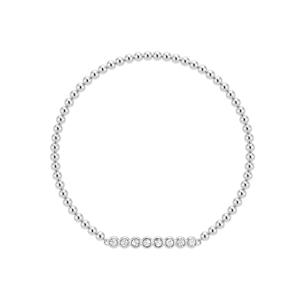 Elevate your style with the refined elegance of the Beaded Chain Bracelet, where subtle sophistication meets modern design. Adorned with eight perfectly set lab-grown diamonds, each stone is delicately encased in a prong setting, arranged in a harmonious balance that creates a stunning, symmetrical effect.