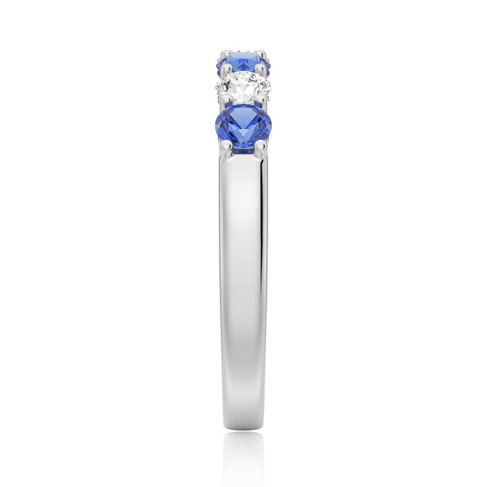 Celebrate your special milestone with the Blue Sapphire and Moissanite Anniversary Band. Available in S925 silver, 10K gold, 14K gold, or platinum, this band features brilliant blue sapphires alternating with dazzling moissanite stones, creating a stunning contrast that is sure to turn heads. The delicate yet durable band is perfect for everyday wear, while the combination of sapphires and moissanite stones makes it a true showstopper. Whether it's to commemorate an anniversary or simply to add a touch of glamour to your jewelry collection, this band is a must-have.
