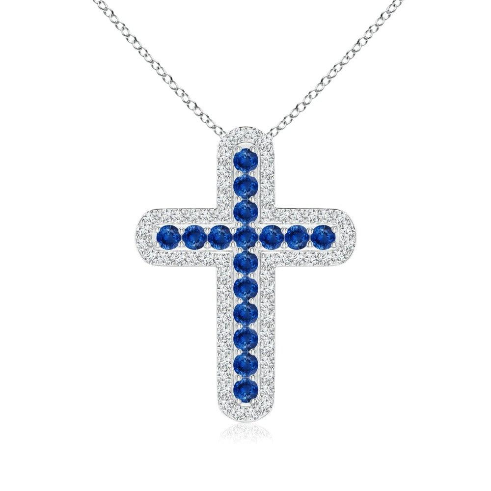 With a touch of color, this gemstone cross pendant is a symbolic accessory you'll want to wear often. Fashioned in 925 sterling silver, this design showcases a classic cross lined with bright blue sapphires and shimmering white sapphires. Captivating with 0.73 ct. t.w. of sapphires and a brilliant buffed luster, this pendant suspends along a cable chain that secures with a lobster claw clasp.