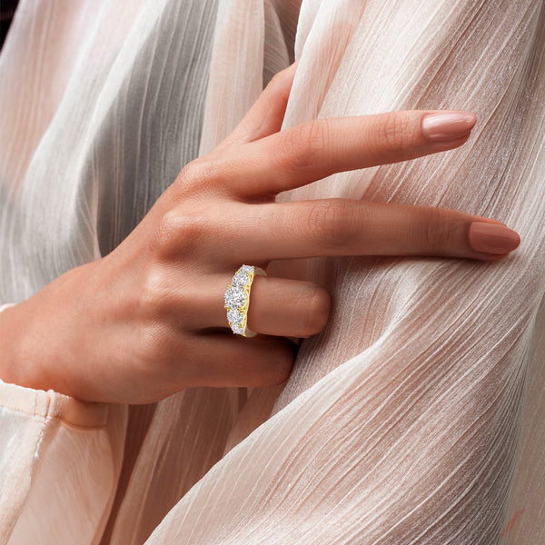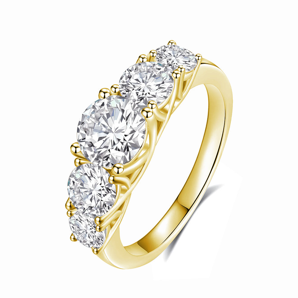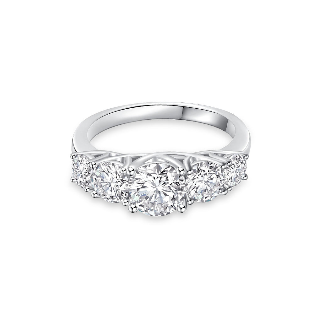 Let this radiant five-stone ring be a lasting reminder of your journey together, shining just as brightly as your love.