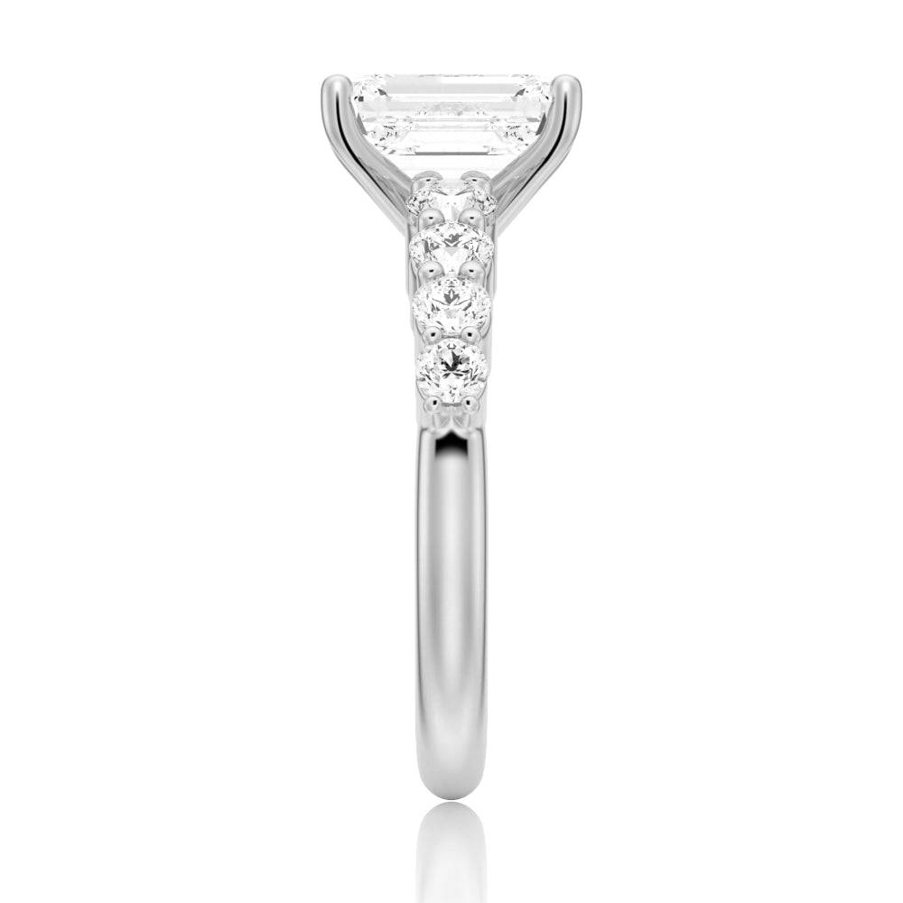 Classic Shared Prong Emerald Cut Moissanite Engagement Ring