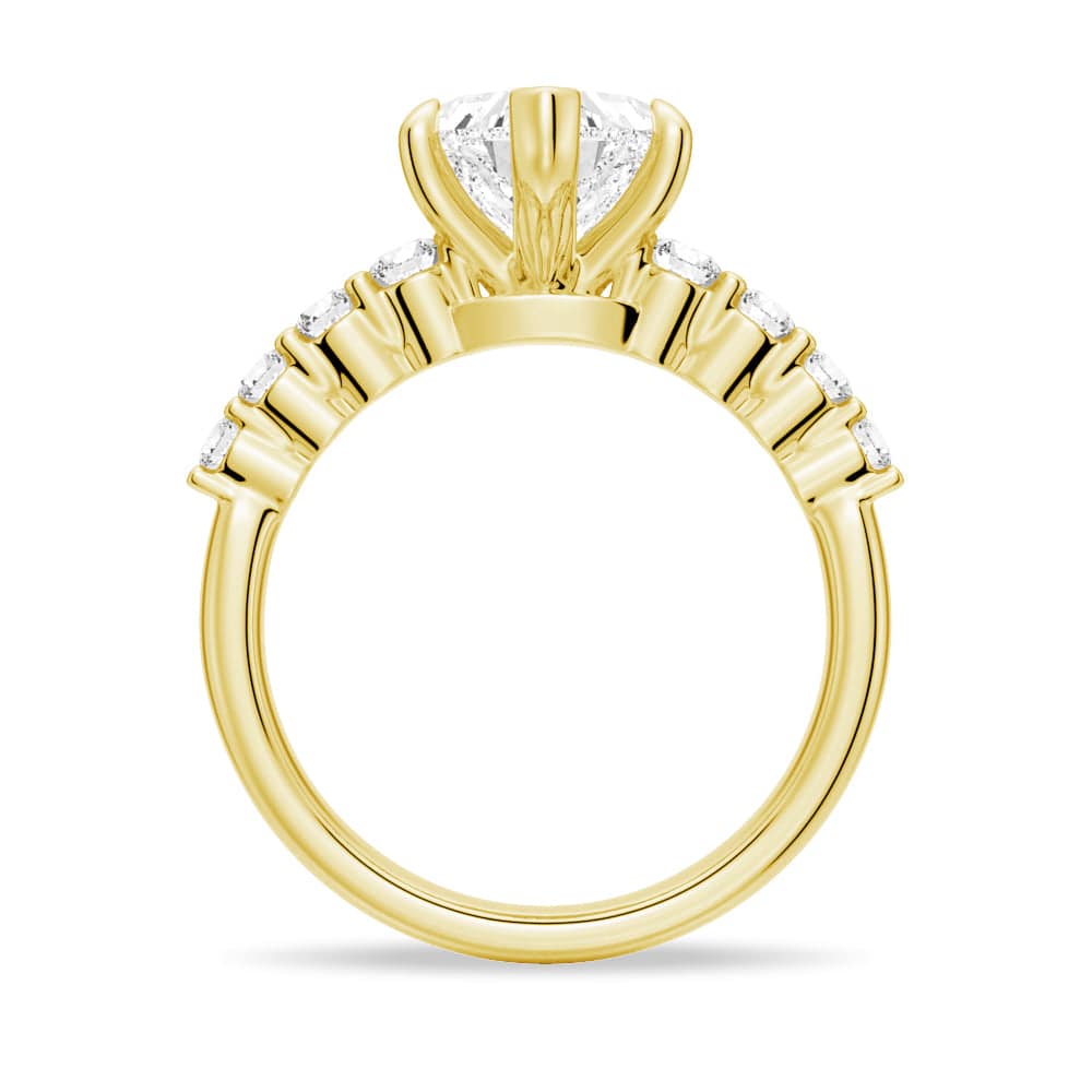 The shared-prong setting allows maximum light to pass through, creating a mesmerizing display of light and brilliance. The carefully crafted design ensures that each stone is held securely in place, providing both elegance and durability. The classic and timeless design of this engagement ring makes it the perfect choice for couples seeking a unique and meaningful ring that will be cherished for a lifetime. Celebrate your love with our Classic Shared-Prong Heart Shaped Moissanite Engagement Ring, the perfect way to start your forever together.