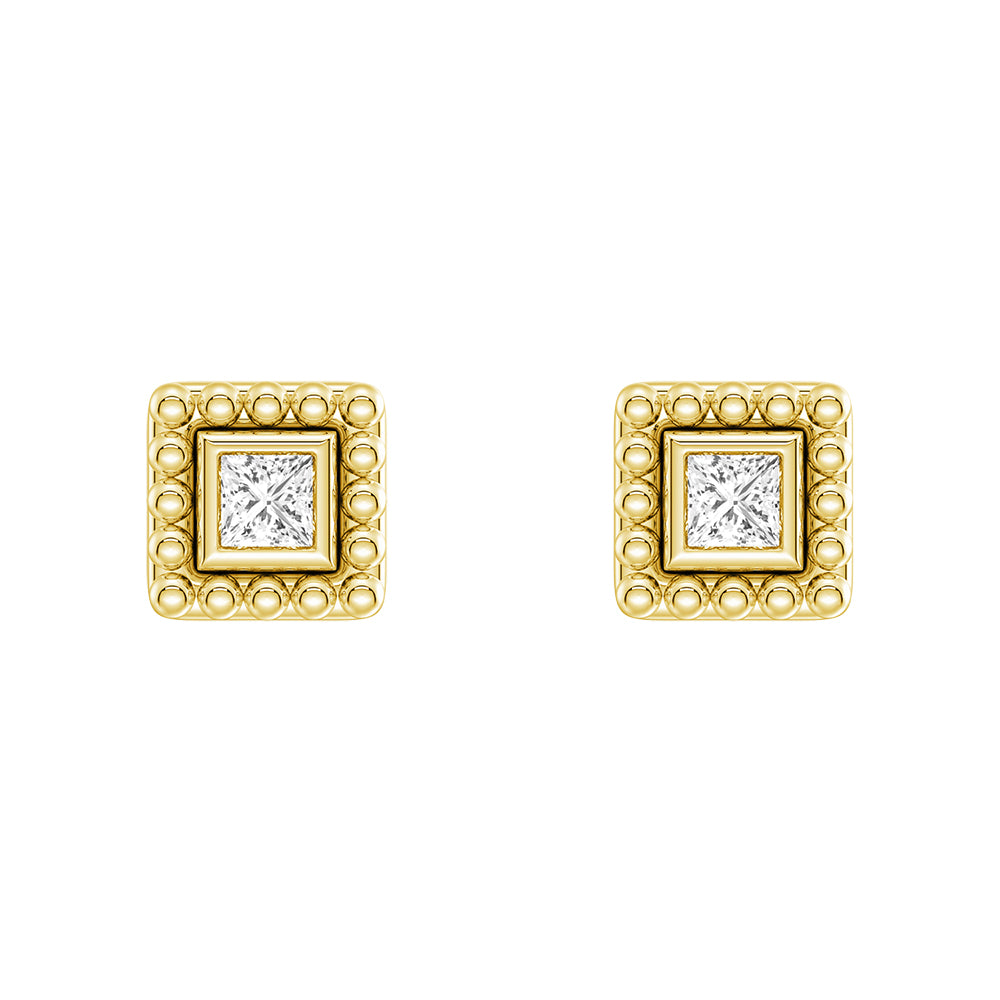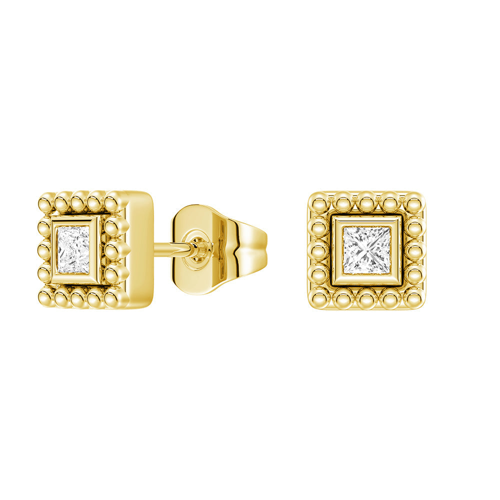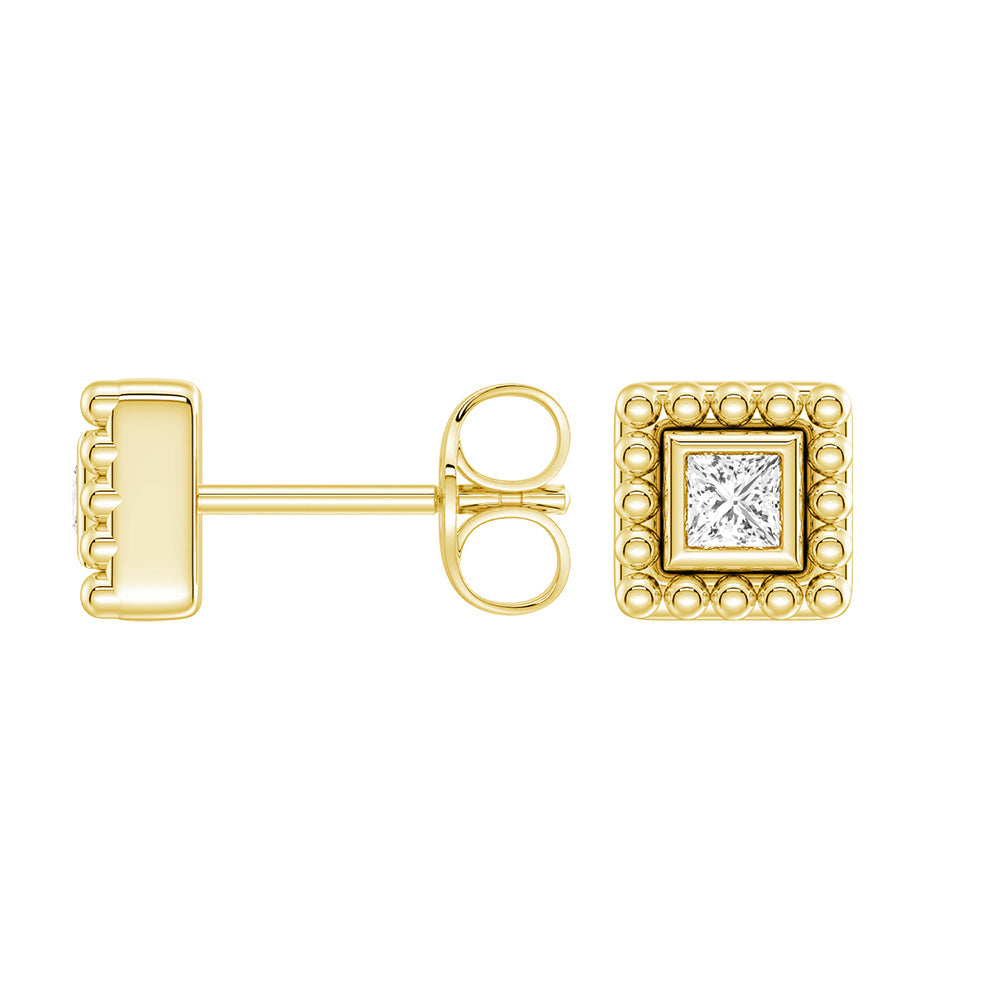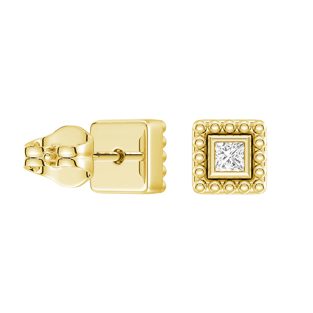 Elevate your everyday look with these versatile 2-in-1 convertible stud earrings, designed with a detachable beaded jacket for two unique ways to wear. At the heart of each earring shines a stunning princess cut lab-grown diamond, expertly bezel-set for a modern, polished finish. Wear the sleek solitaire studs for a minimalist statement, or add the beaded halo jackets for an extra touch of elegance and texture.