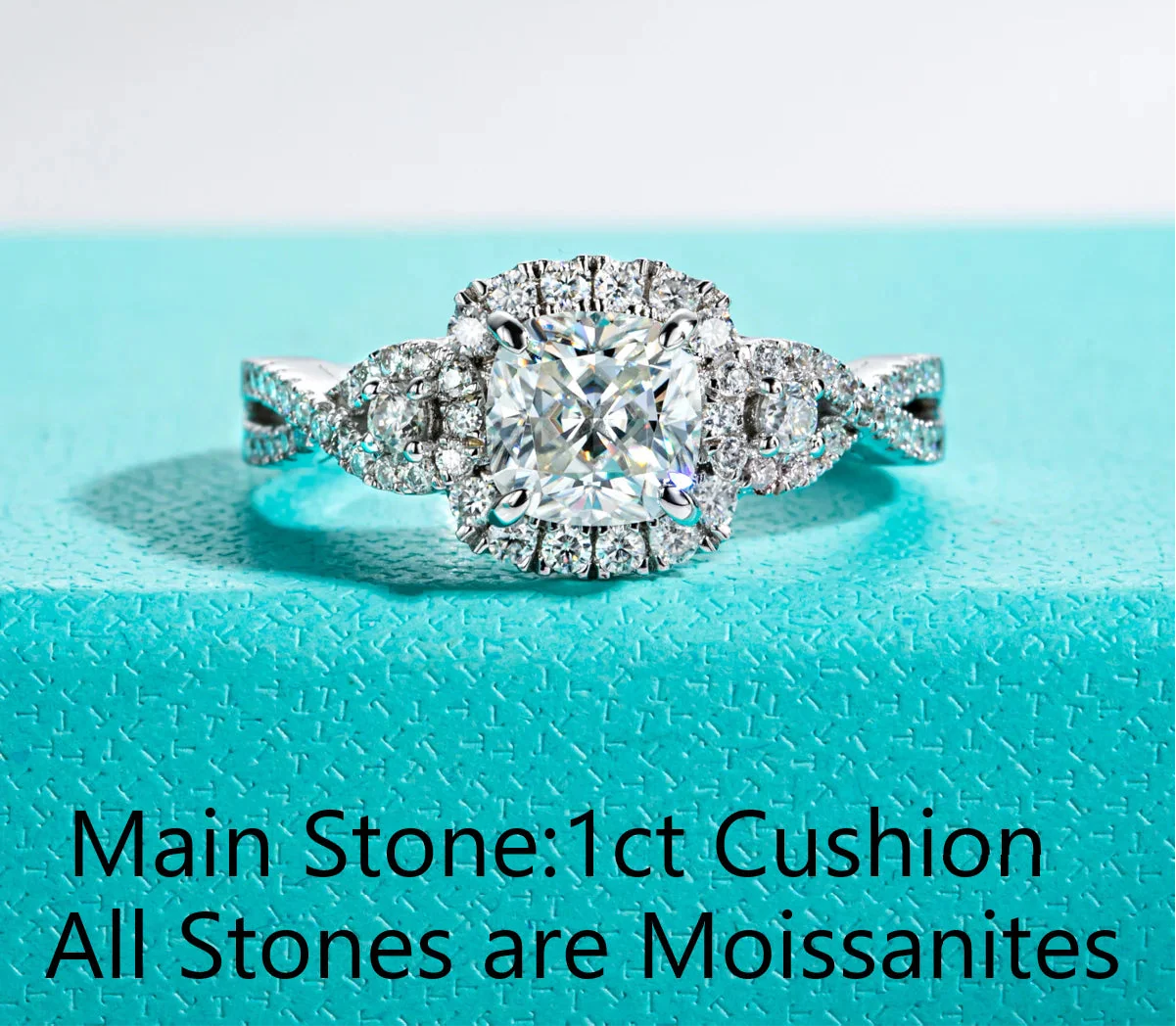 Main Stone: Cushion Cut Moissanite – Total Carat Weight: 1.434 CTTW