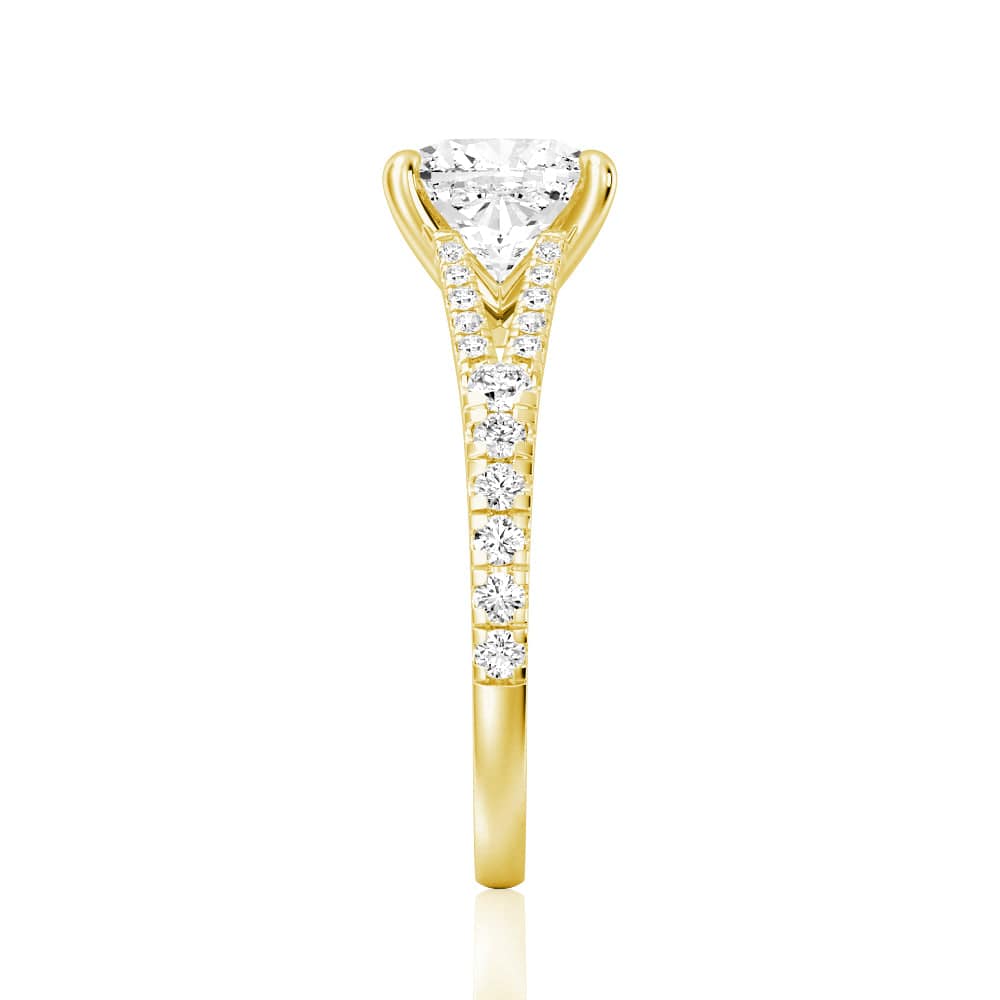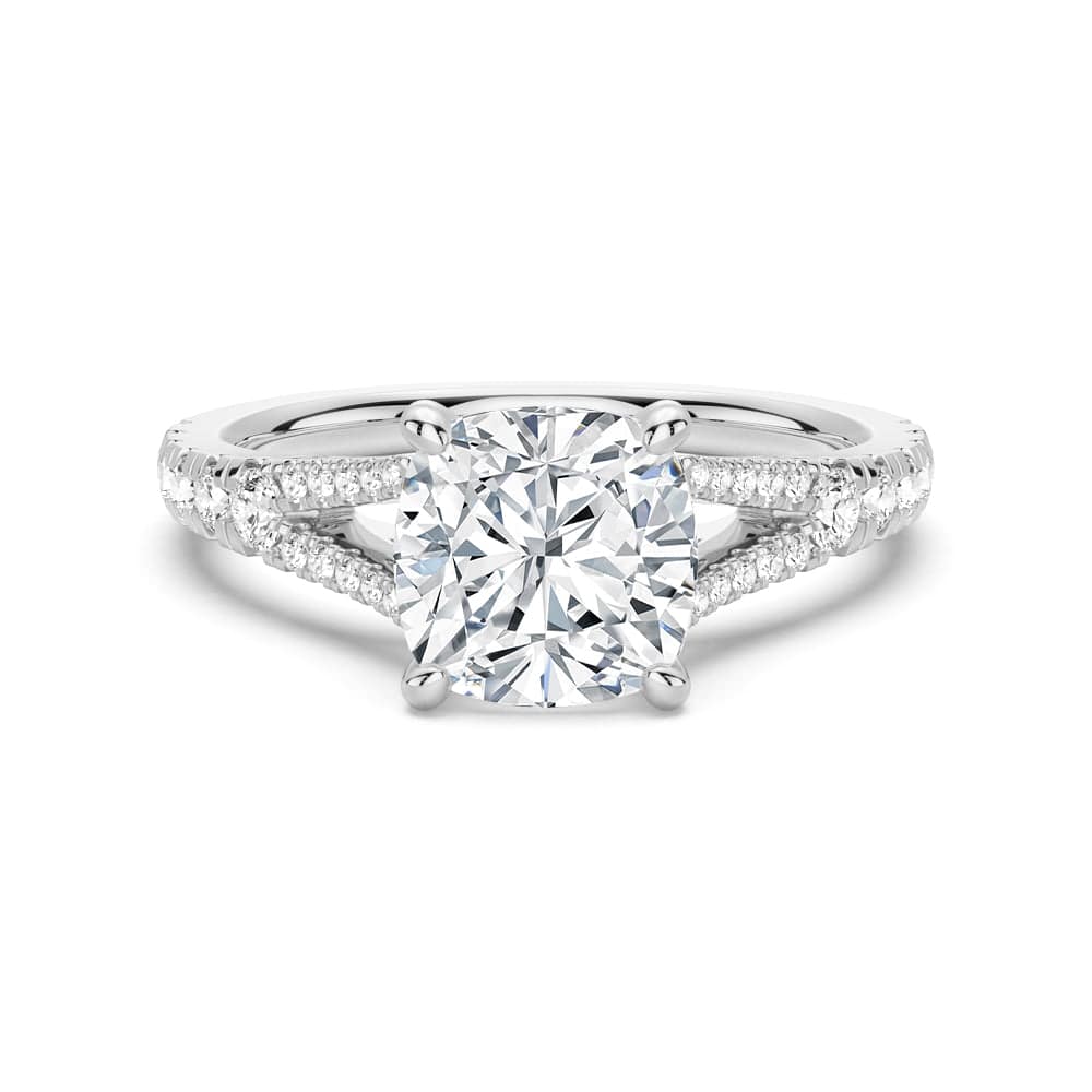 The split-shank design of this ring symbolizes the two paths of your lives coming together as one, making it the perfect choice for a romantic proposal or anniversary gift. The cushion cut of the stone adds a touch of elegance and sophistication, making it a perfect choice for the modern bride.