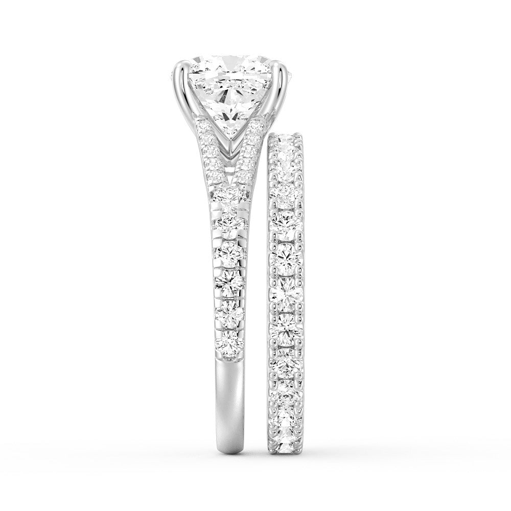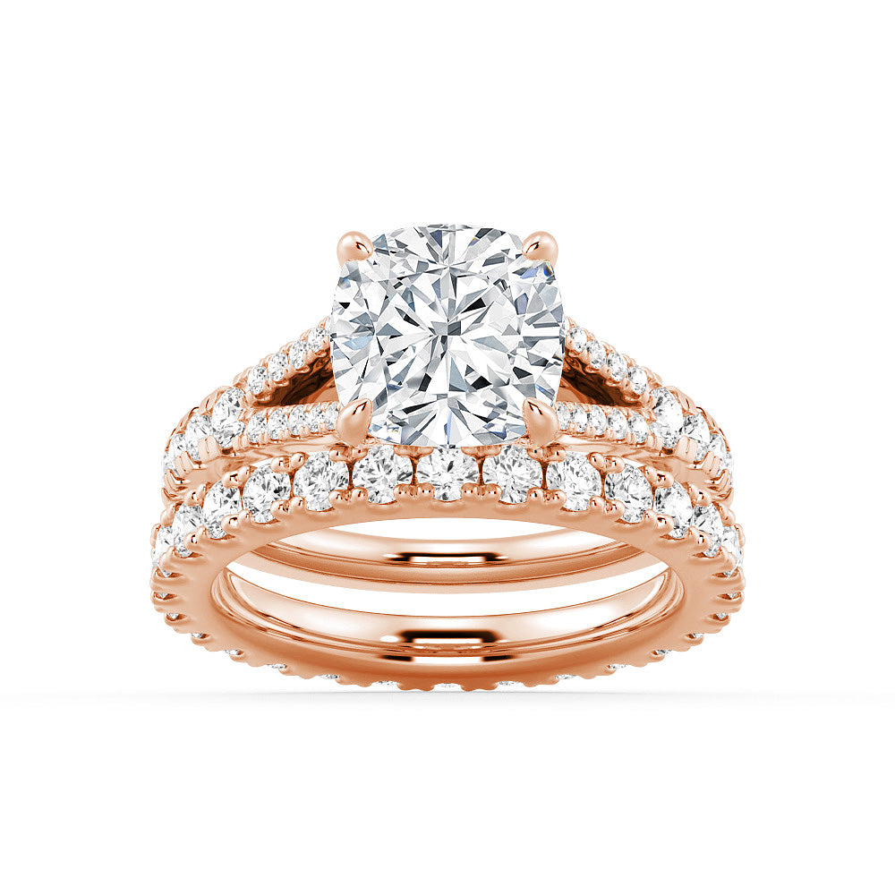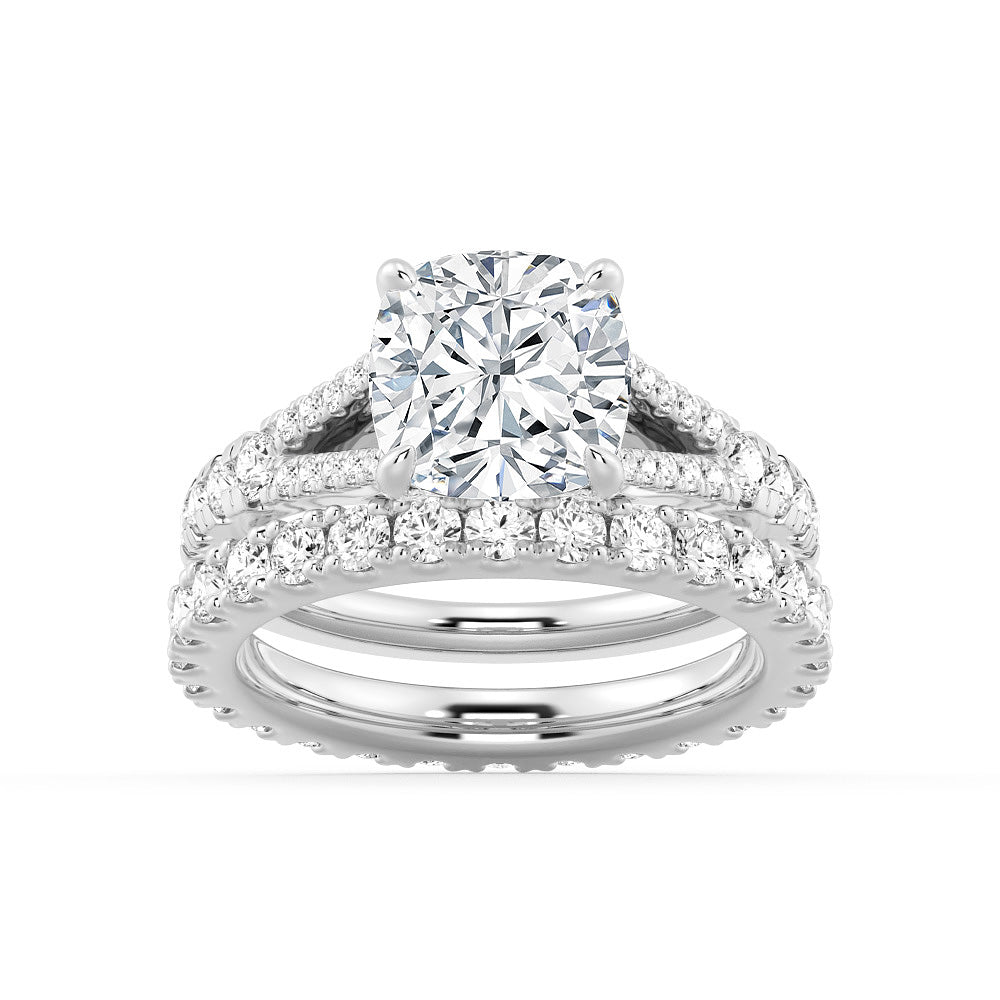 Cushion Cut Split Shank Moissanite Ring Set with Matching Wedding Band