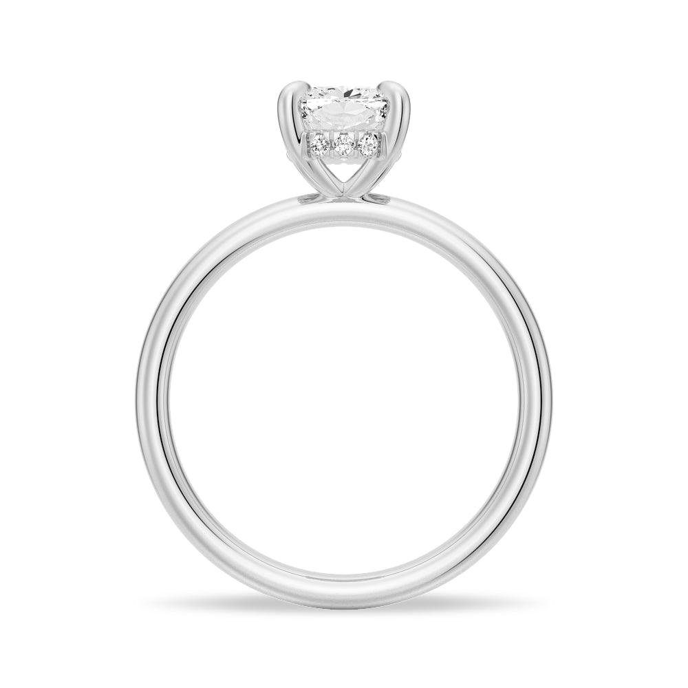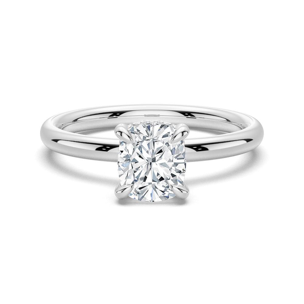 This elegant solitaire engagement ring features a stunning 1.5-carat cushion-cut main stone, expertly secured by a classic four-prong setting. The cushion-cut diamond, known for its soft, rounded corners and brilliant sparkle, takes center stage, showcasing its timeless beauty. The simple yet sophisticated design of the solitaire setting allows the diamond to shine brilliantly, making it a perfect choice for a classic and refined expression of your love. Crafted with precision and care, this ring is a timeless symbol of commitment and elegance.