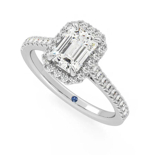 Emerald Cut Halo Moissanite Engagement Ring with Hidden Anniversary Stone Accent