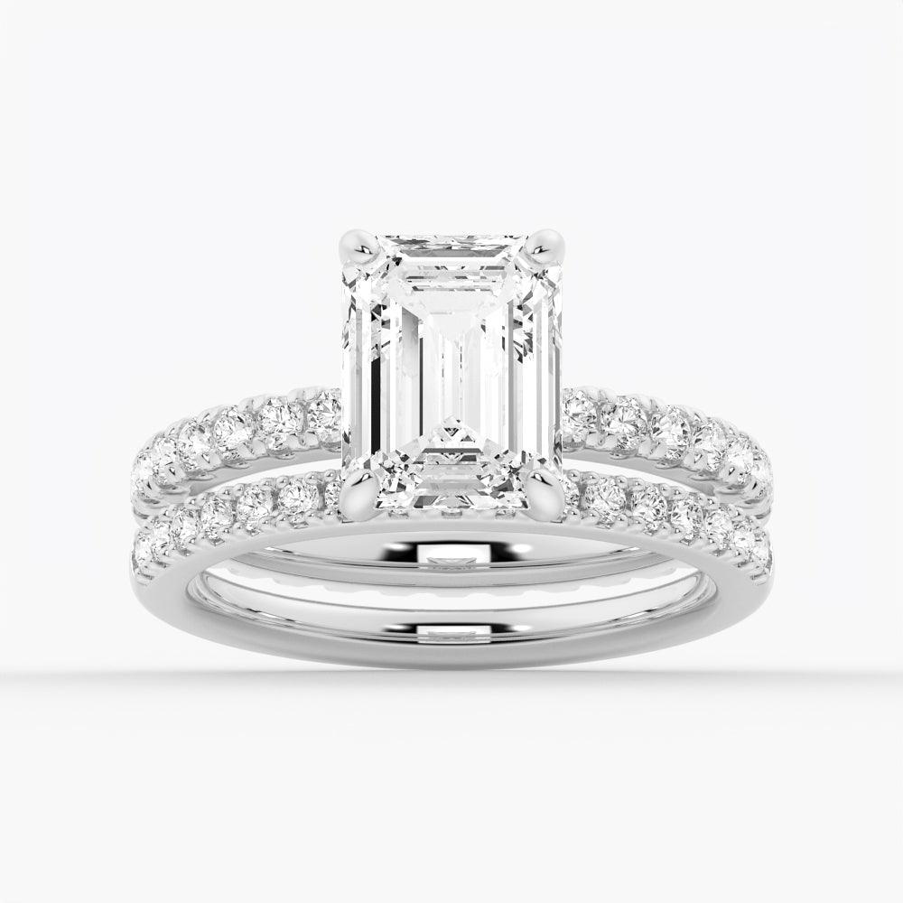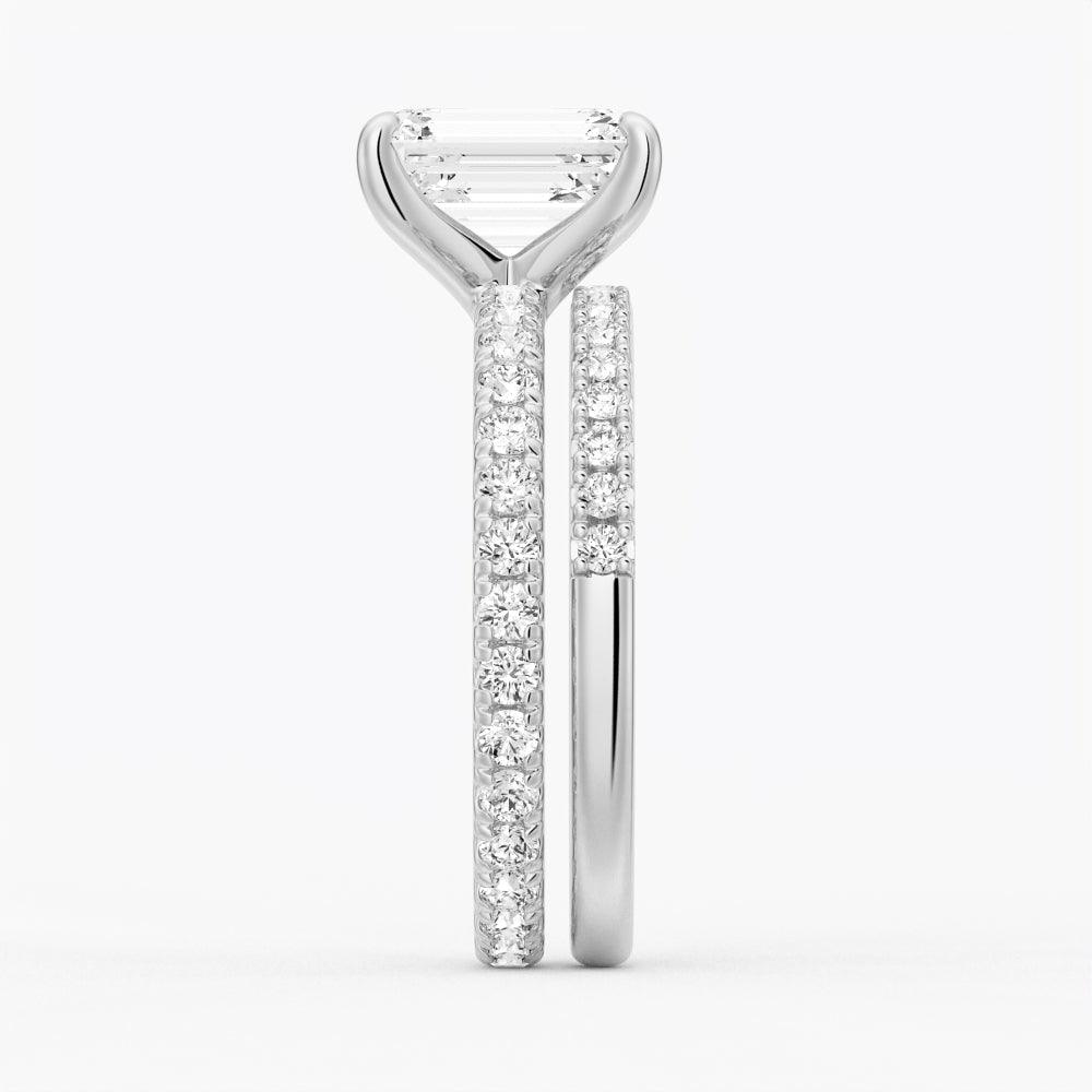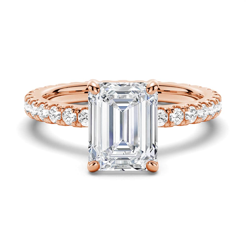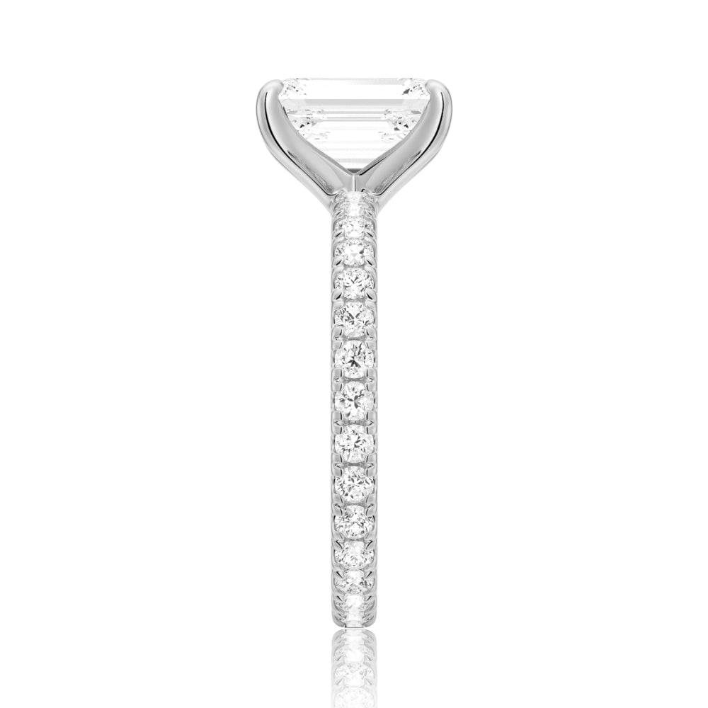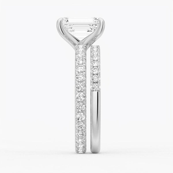 Emerald Cut Moissanite Engagement Ring With Eternity Pave Band