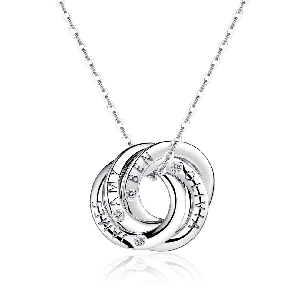 The Engraved Interlocking Russian Rings Necklace Pendant is a beautiful and meaningful piece of jewelry that symbolizes the unbreakable bond between loved ones. Crafted with high-quality materials, the pendant features three interlocking rings that represent unity, love, and commitment. The rings can be engraved and customized to feature the names or initials of loved ones, making this necklace a unique and personalized gift. This necklace pendant is also versatile, as it can be customized from two rings to four rings, allowing you to add more personalization and meaning to the piece. Perfect for any occasion, the Engraved 3 Interlocking Russian Rings Necklace Pendant is a thoughtful and heartfelt gift that will be cherished for years to come.