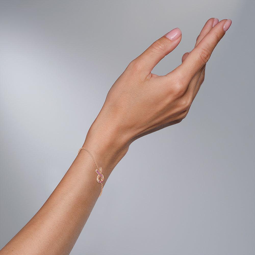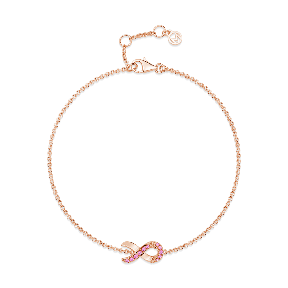 "Faith Over Fear" Ribbon Bracelet In Rose Gold With Pavé Pink Sapphires