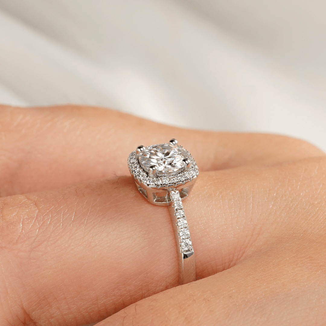 Four Prongs Pavé Halo Moissanite Engagement Ring