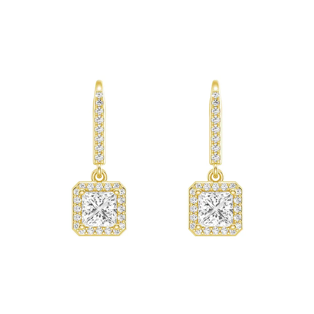 Framed Solitaire Princess Cut Moissanite Drop Earrings
