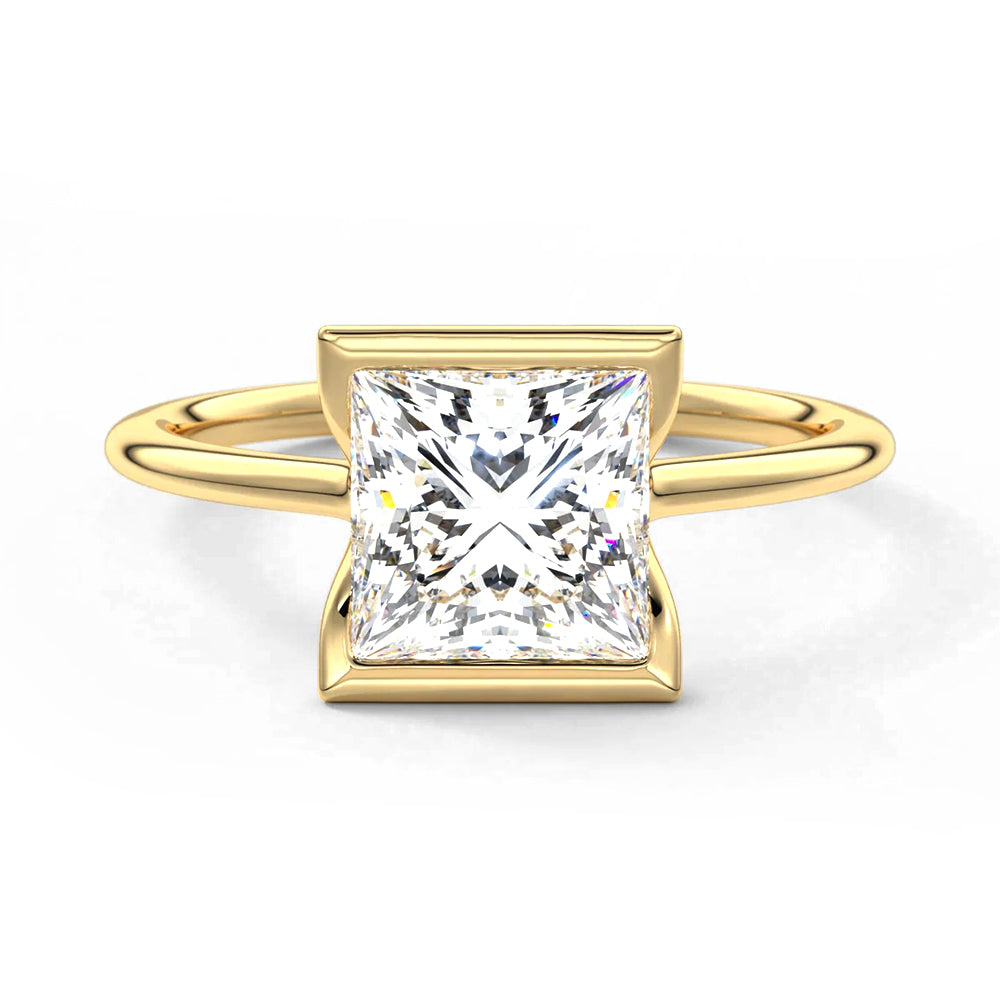 Half Bezel Moissanite Princess Cut Engagement Ring