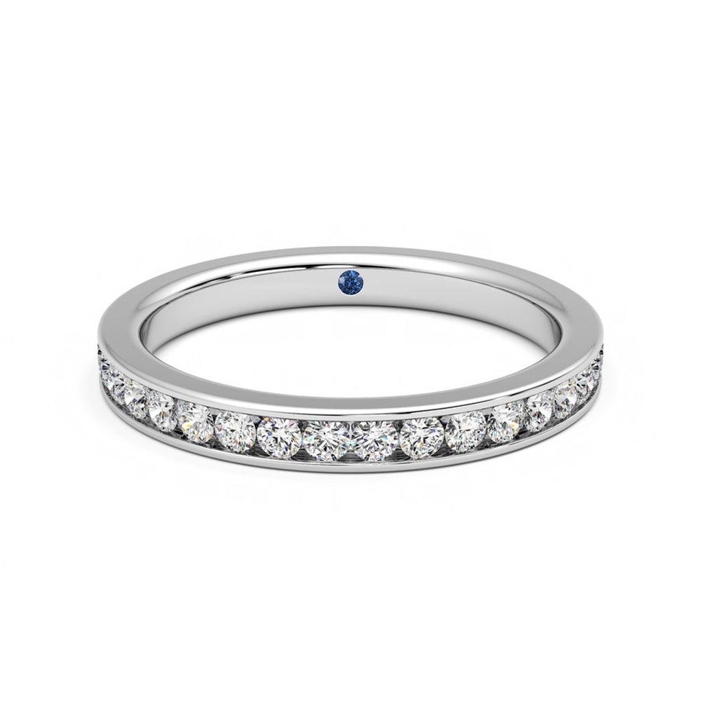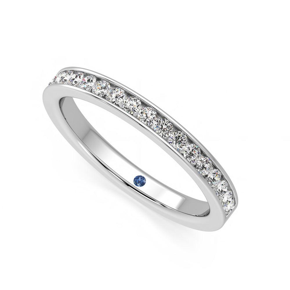 The Half Eternity Channel Set Moissanite Wedding Band can be worn alone for a refined, contemporary style or paired with an engagement ring for a seamless and elegant combination. Perfect for weddings, anniversaries, and special moments, this band represents the timeless nature of your love.