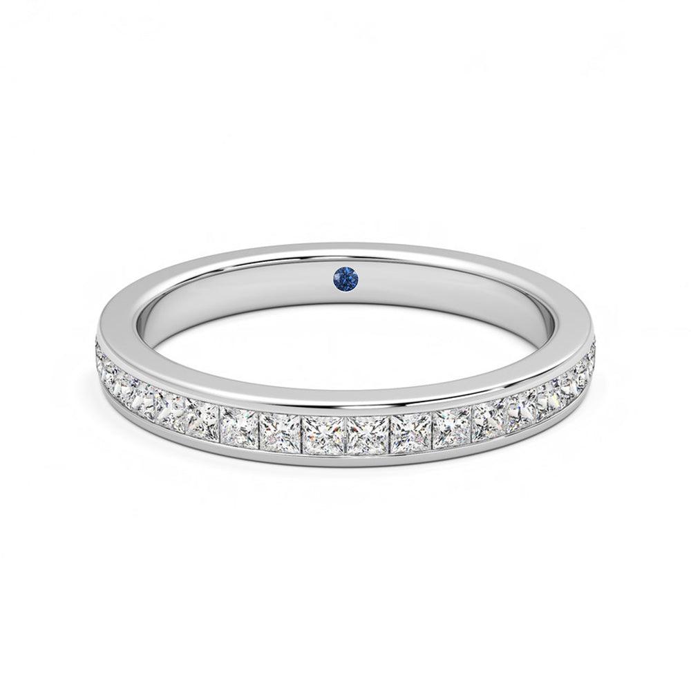 The Half Eternity Channel Set Princess Cut Moissanite Wedding Band can be worn alone for a striking, contemporary look or paired with an engagement ring for a cohesive and refined style. Ideal for weddings, anniversaries, and special occasions, this band is a timeless symbol of your love and commitment.