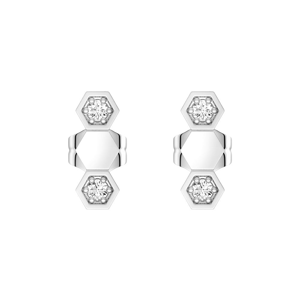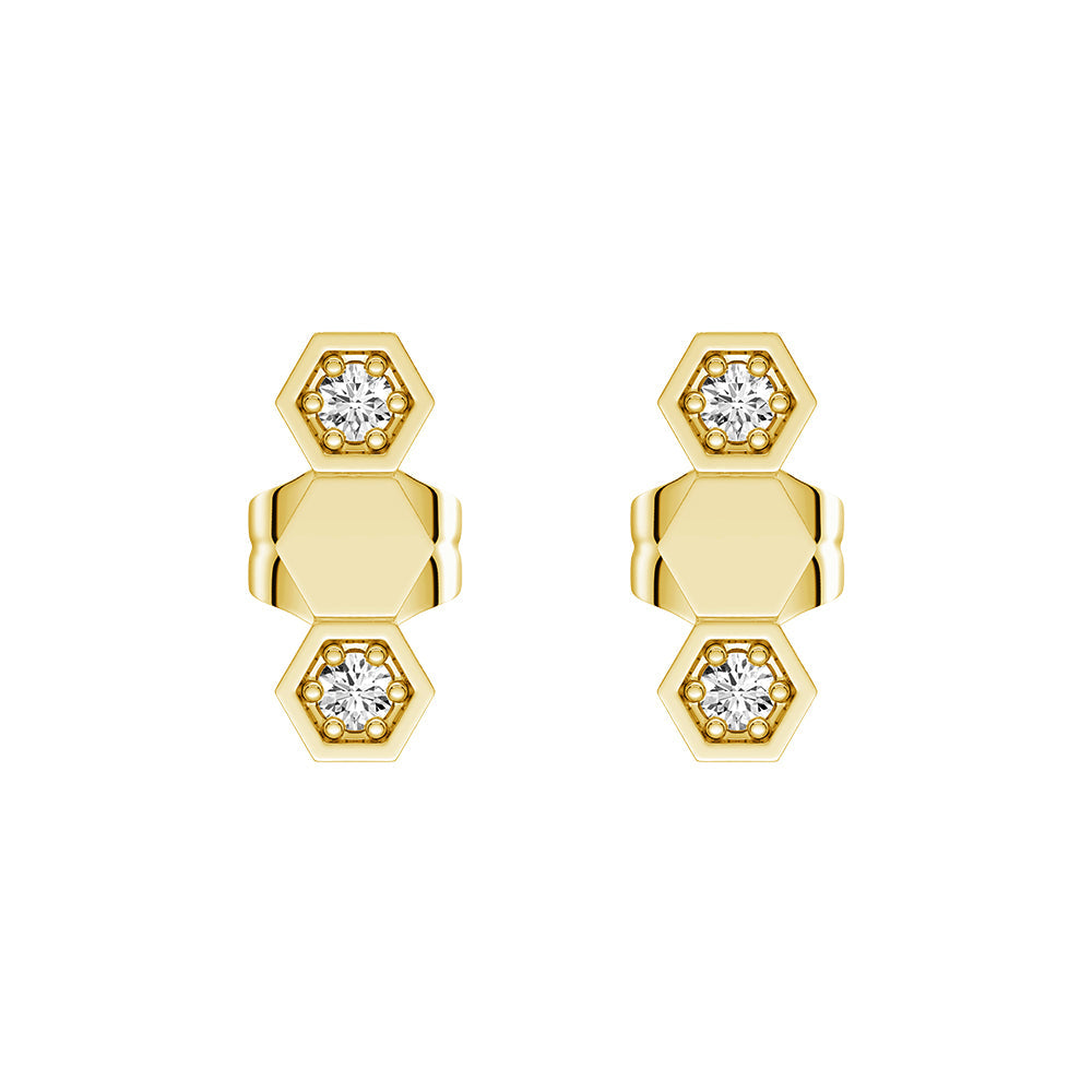 Honeycomb Hexagon Stud Earrings with Lab Grown Diamonds